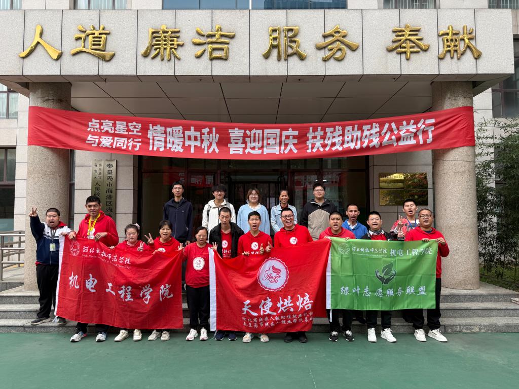 2025年10月15日,beat365在线唯一官网绿叶志愿服务联盟社团在海港区残疾人联合会建立了就业帮扶基地,开展扶残助残志愿服务活动,学工办老师、社团同学、残联工作人员共计20余人参加活动。