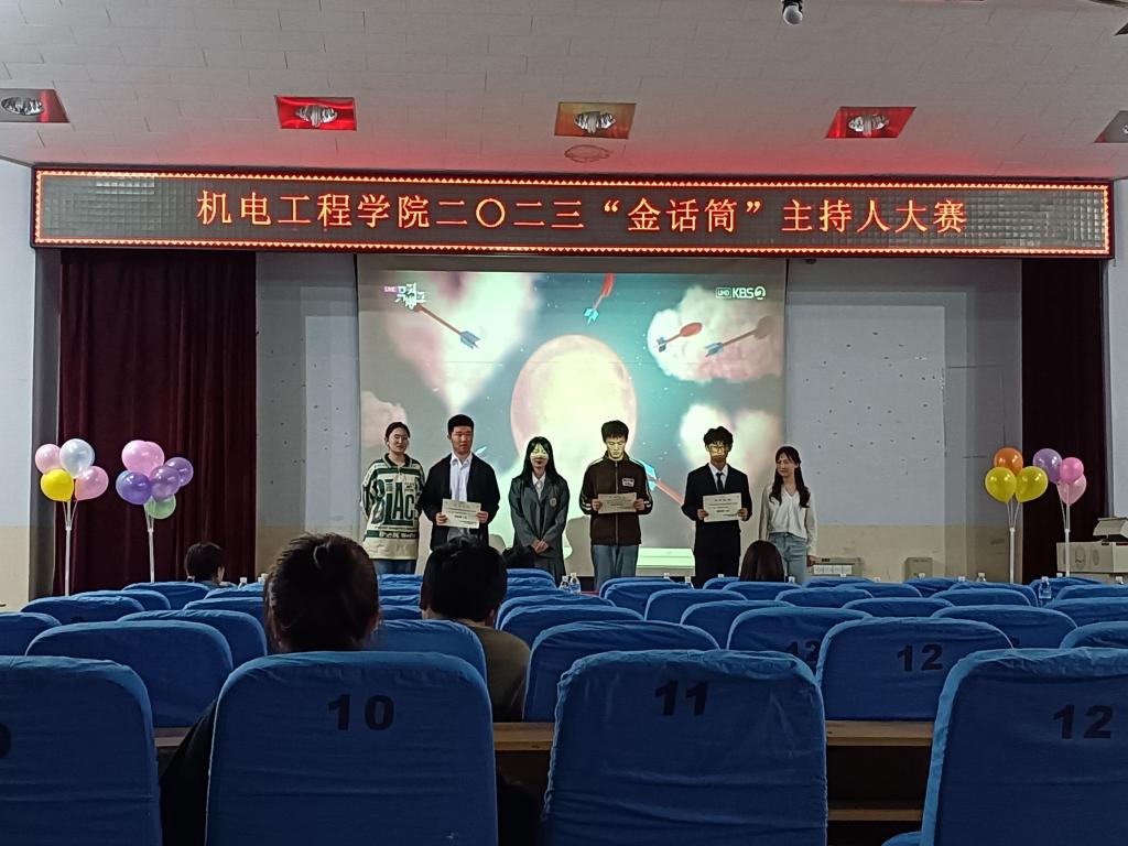 金话筒大赛经过层层选拔,6名选手脱颖而出。此次决赛共分为个人展示、新闻解析、词语陈述3个环节,各位选手从容自信、妙语连珠,经过激烈的角逐,最终任宏业荣获冠军、彭泽朝获得第二名、吕正洋和李若飞并列第三。此次活动展现了青年学子的魅力与风采,锻炼了同学们的舞台表现能力。