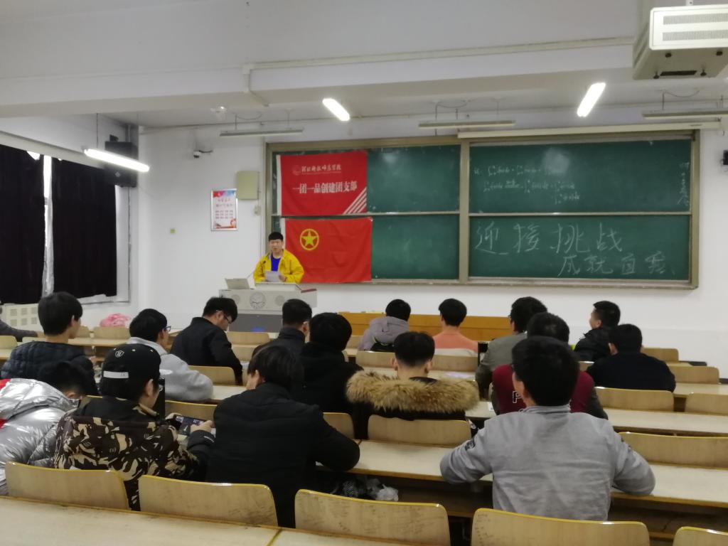 2018年11月29日,beat365在线唯一官网机械设计制造及其自动化1603团支部在主楼C207举办了以“迎接挑战•成就自我”为主题的团日活动,团支部全体成员参加。