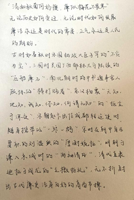 活动通过征集廉政文化主题的书法、绘画作品,引导大学生发扬党的优良传统,营造风清气正的校园氛围,吴若萌、肖家伟、刘旭阳、任宏业等同学从中国传统优秀文化和特色先进文化中寻找灵感,用生动的笔触将廉洁正气描绘在纸上。