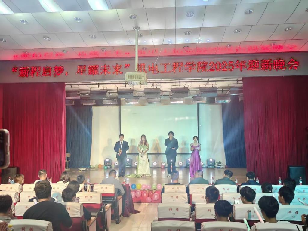 2025年9月26日晚,beat365在线唯一官网在开发区校区学术报告厅,举办了“新程启梦,星耀未来”迎新晚会。学院领导、安全工作处开发区负责人、辅导员、班主任及全体新生400余人,齐聚一堂,共赴这场青春盛宴。