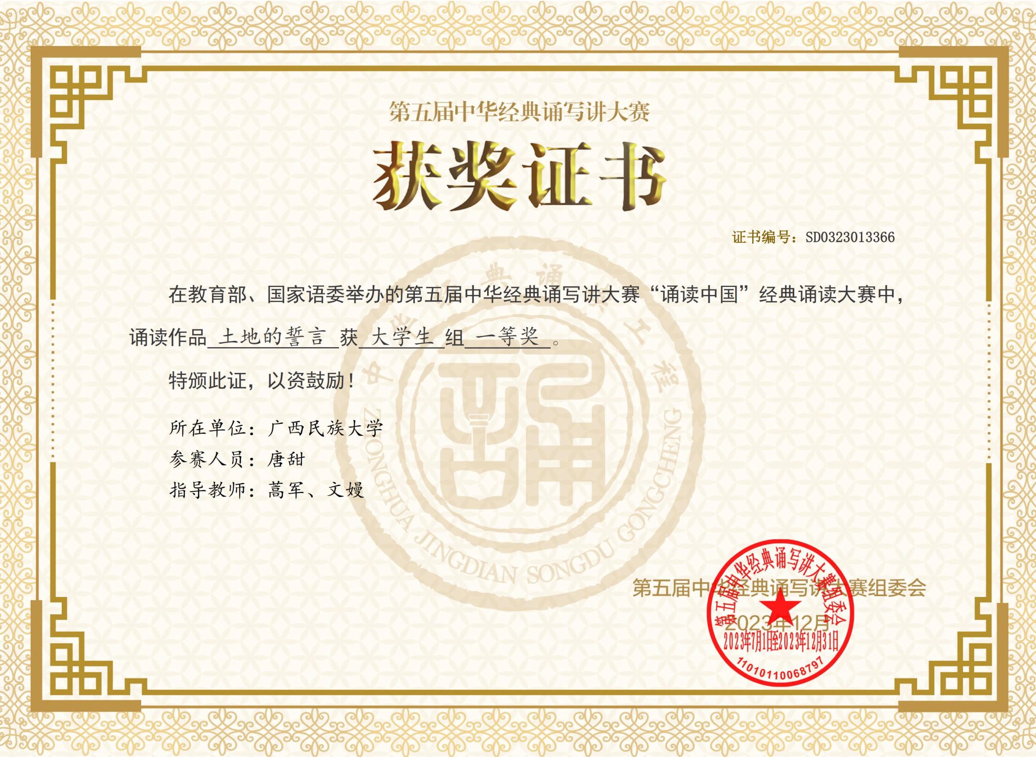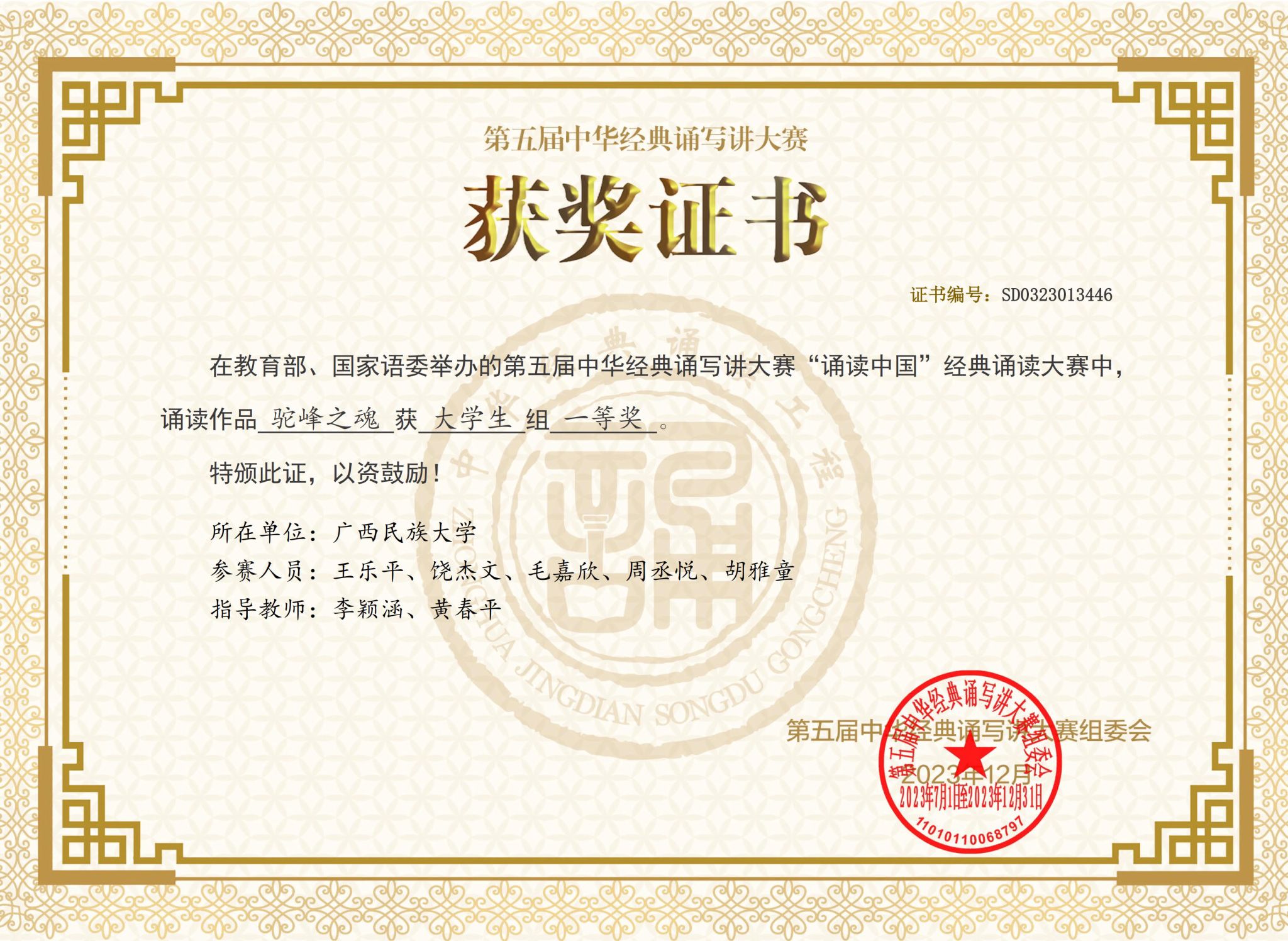 有关链接:第五届中华经典诵写讲大赛获奖名单