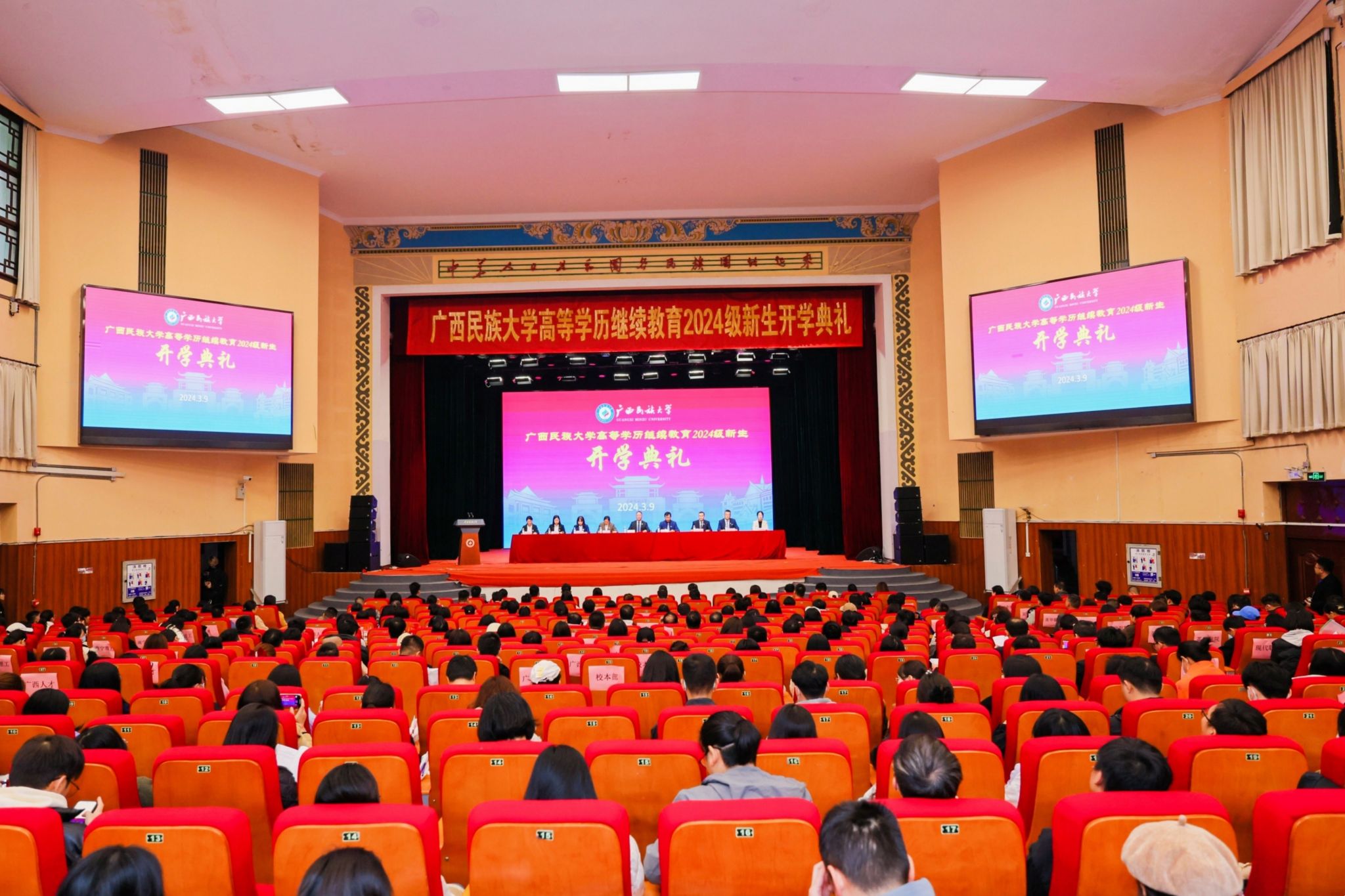 3月9日上午,beat365英国官方网站在相思湖校区大礼堂举行高等学历继续教育2024级新生开学典礼。学校党委常委、副校长何立荣出席典礼并讲话,近500名新生代表参加开学典礼。