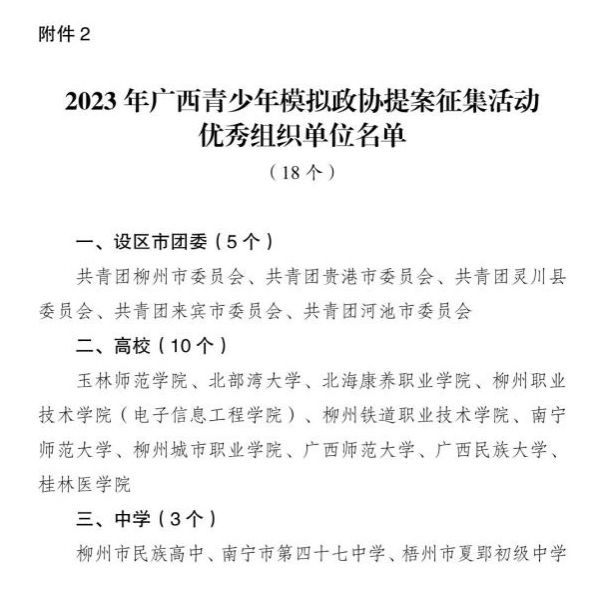 2023年广西青少年模拟政协提案征集活动优秀组织单位名单