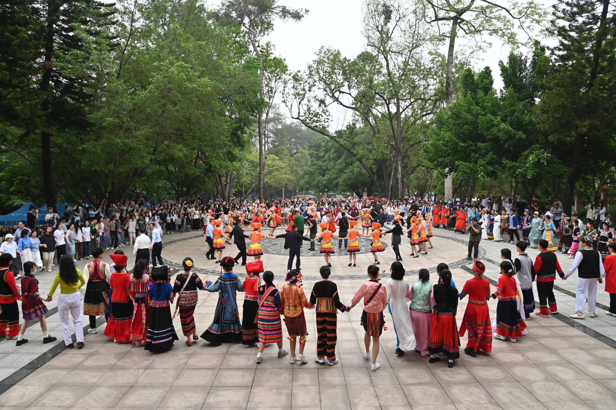 本次活动设有民族风情展示区、民族游戏畅玩区、民族乐器体验区、民族手工体验区、民族服装体验区、民族非遗制作区、茶文化体验区、礼品兑奖区、民族体育竞赛、山歌擂台挑战区、民族美食流水席等多个板块。竹竿舞动,茶香四溢,各式各样的传统民族服饰、手工包袋、非遗陶艺等民族手工艺品,造型各异、琳琅满目,烘托出浓浓的民族团结氛围,令师生目不暇接,流连忘返。(初审:潘之铭 复审:荣子卿 终审:王文娟)