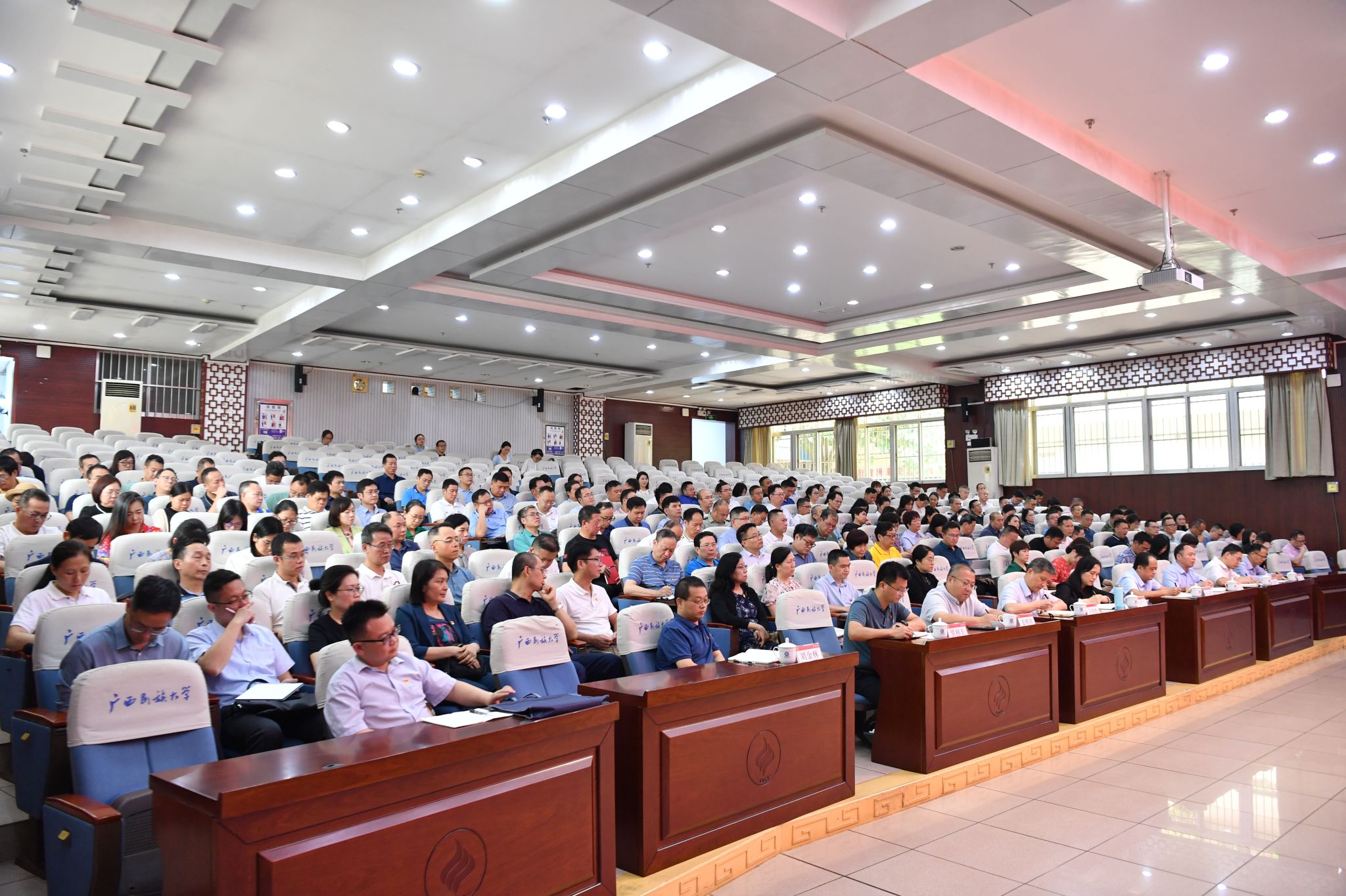 【大学生通讯社报道】4月15日下午,beat365英国官方网站党纪学习教育动员部署会在科技楼报告厅召开。校党委书记卞成林,党委副书记、校长韦仕珍出席会议。学校领导、学校党委委员、纪委委员、学校党的建设和全面从严治党工作领导小组成员、职能部门主要负责人、各院级党组织书记、学校党纪学习教育工作专班全体成员等参加会议。韦仕珍主持会议。