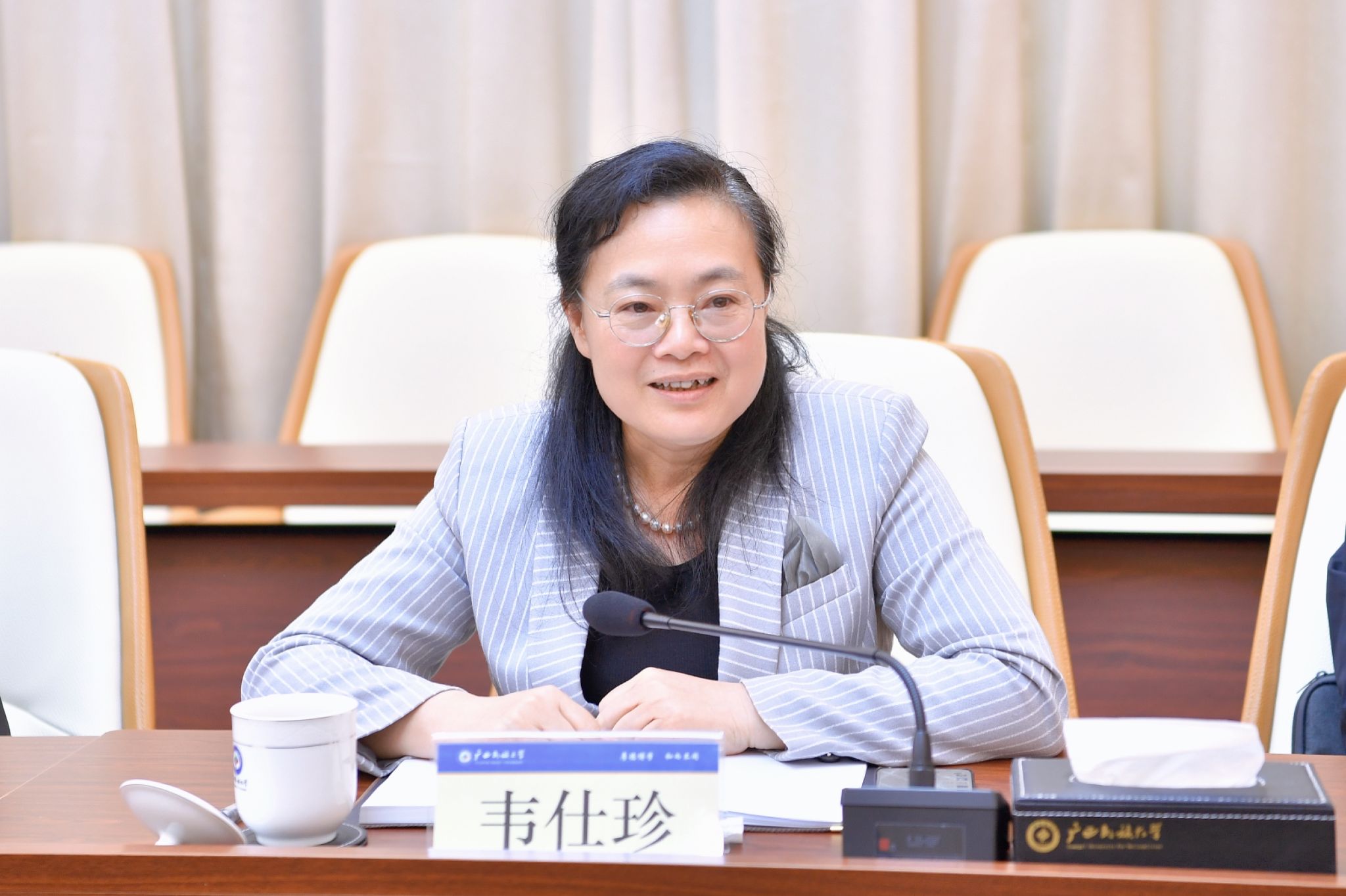 各有关学院负责人汇报本学院发展现状、本科教育教学审核评估工作的进展情况,就近期工作、存在的困难和本科教育教学审核评估工作进行发言。韦仕珍听取各单位的发言,对本科教育教学审核评估、学院文化建设、学科建设与发展、师资管理、人才培养等工作进行指导和部署。
