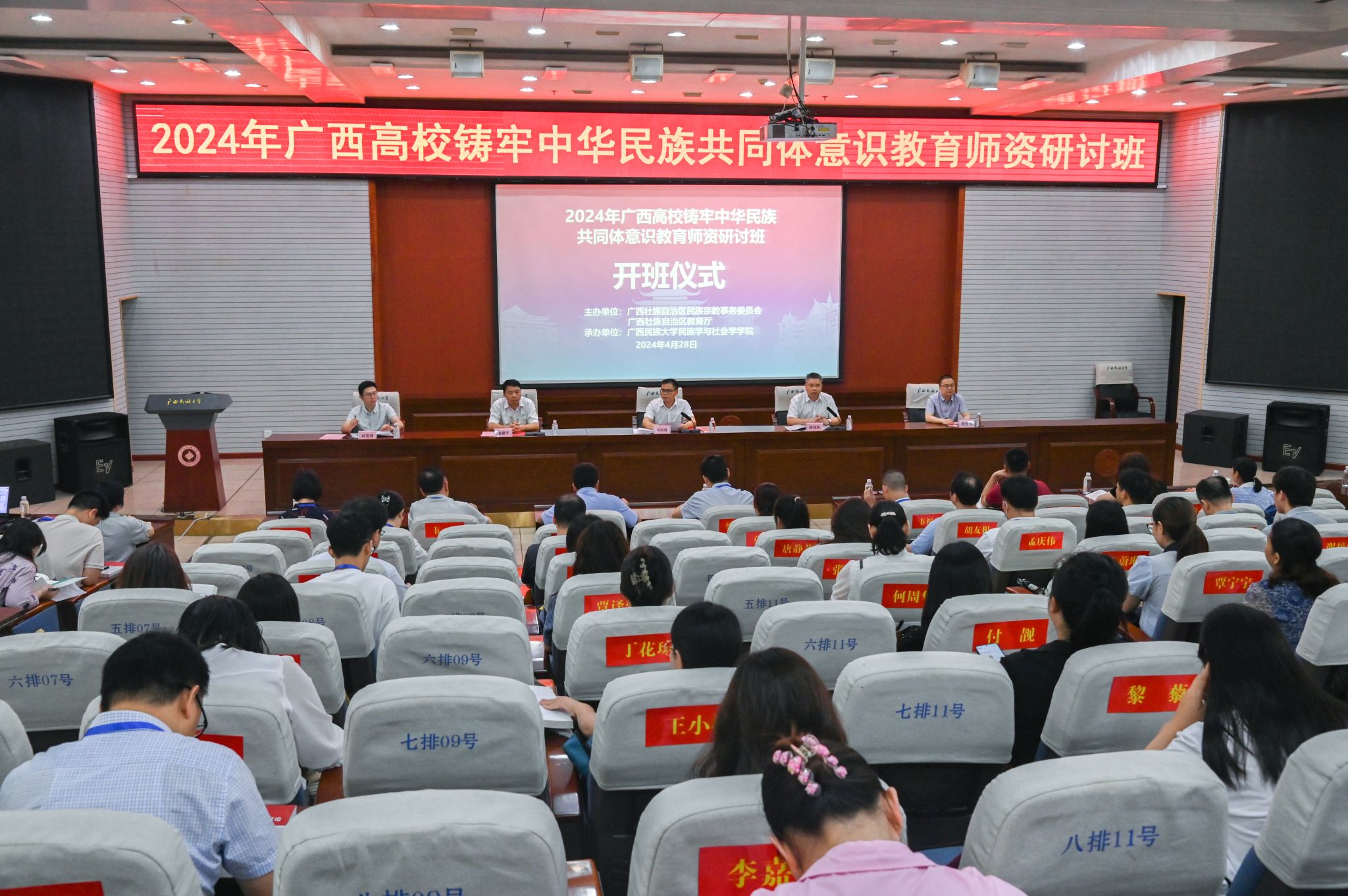 【大学生通讯社报道】4月28日,2024年广西高校铸牢中华民族共同体意识教育师资研讨班在beat365英国官方网站开班。自治区民族宗教事务委员会党组成员、副主任韦尚雄,beat365英国官方网站党委副书记陈铭彬出席开班仪式。广西各高校教师代表参加学习。