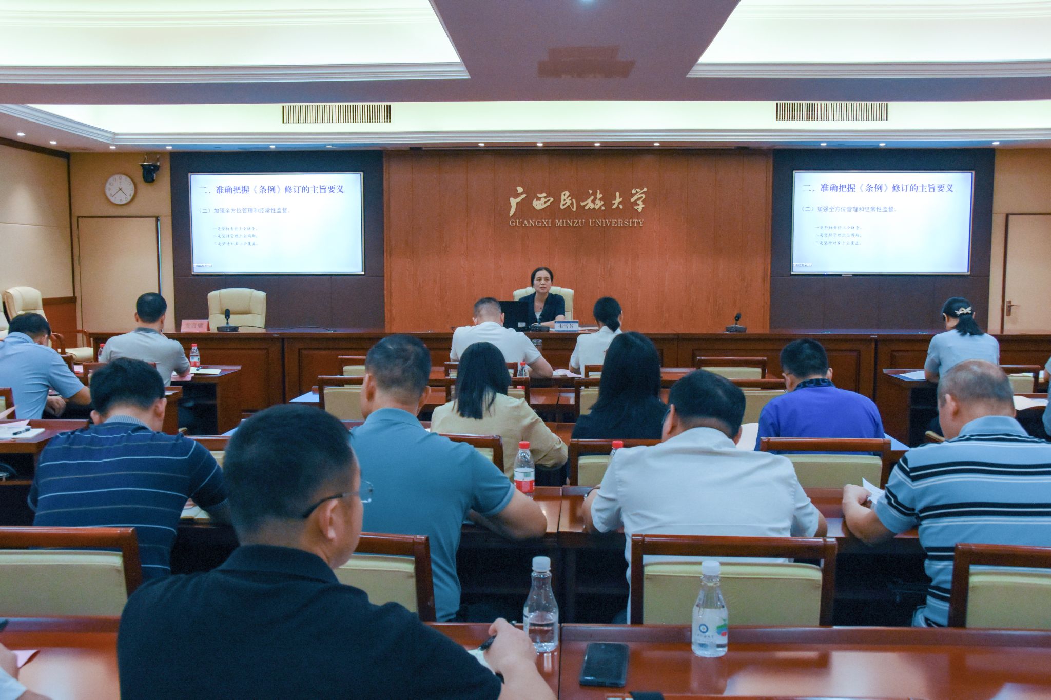 【学校召开纪检干部集中理论学习暨警示教育大会】4月24日,自治区纪委监委驻校纪检监察组组长、校党委副书记、纪委书记韦雪芳在学校纪检干部集中理论学习暨警示教育大会上要求,全校纪检监察干部要深刻认识《中国共产党纪律处分条例》颁布的时代背景,增强学习的主动性和自觉性,争做遵规守纪的表率;要进一步推进党纪学习教育,强化纪律建设,确保严格执纪、精准执纪。(初审/韦惠文 复审/荣子卿 终审/王文娟)
