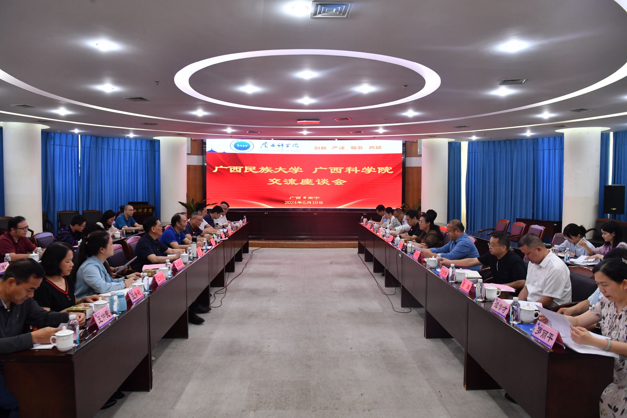 5月10日下午,校长韦仕珍带队到广西科学院开展战略合作会谈,广西科学院党组书记、院长元昌安会见韦仕珍一行。副校长姜明国、高兴宇,广西科学院党组成员、副院长吕郁彪、黄志民等参加座谈。