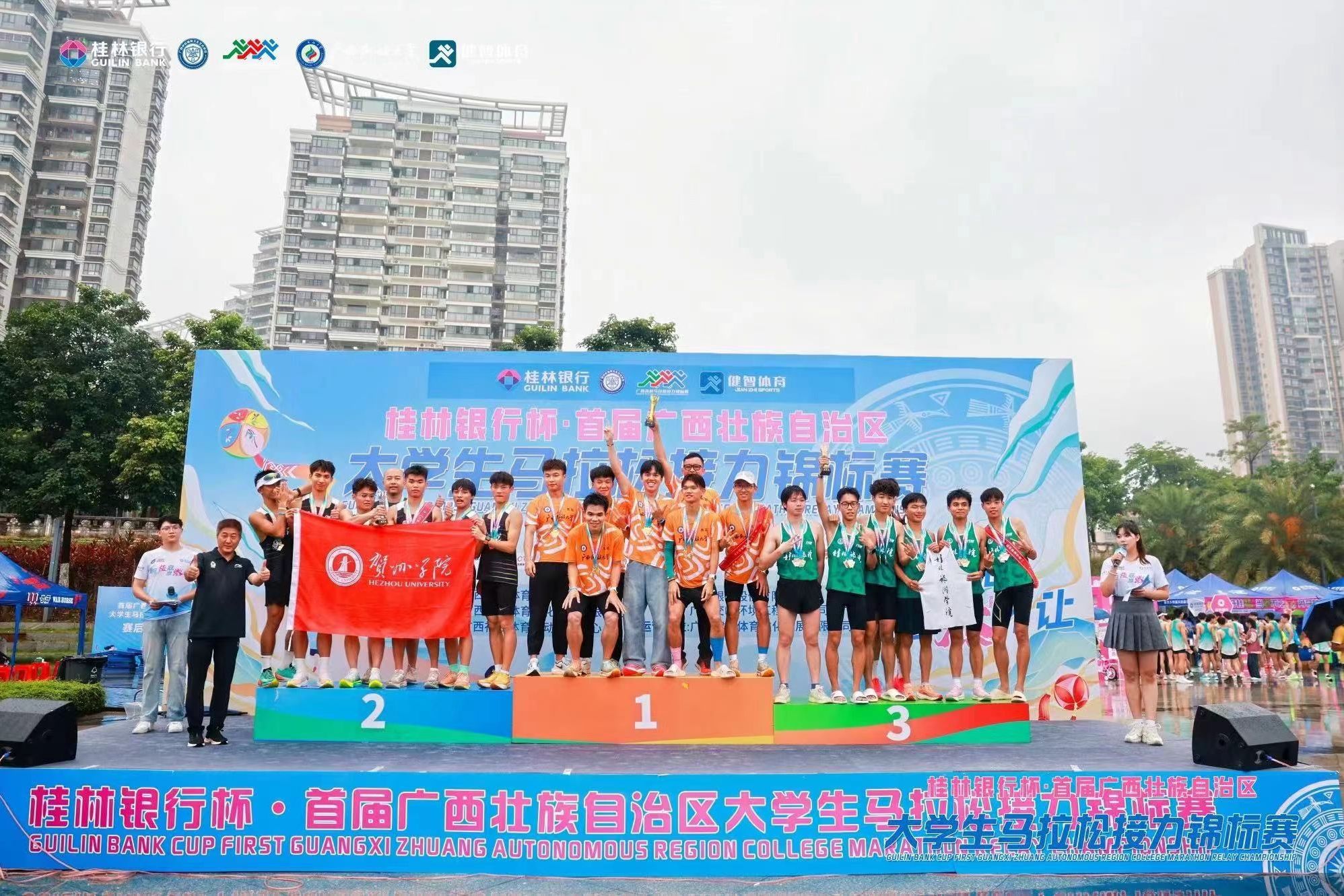 5月18日,首届广西大学生马拉松接力锦标赛在南宁市邕江两岸体育公园拉开帷幕。beat365英国官方网站共有16名学生参赛,经过与全区近50所高校、500多名选手角逐,我校学子在乙组(体育专业)中勇夺冠军,在甲组(普通本科)中荣获亚军。