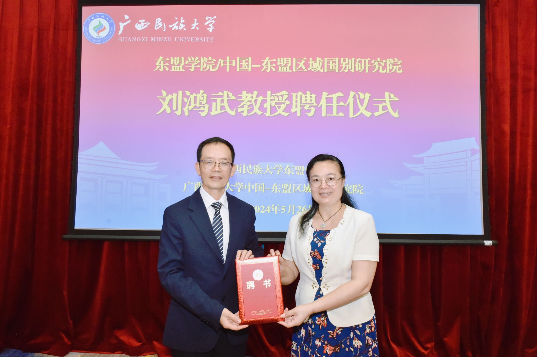 韦仕珍为刘鸿武颁发名誉教授聘书