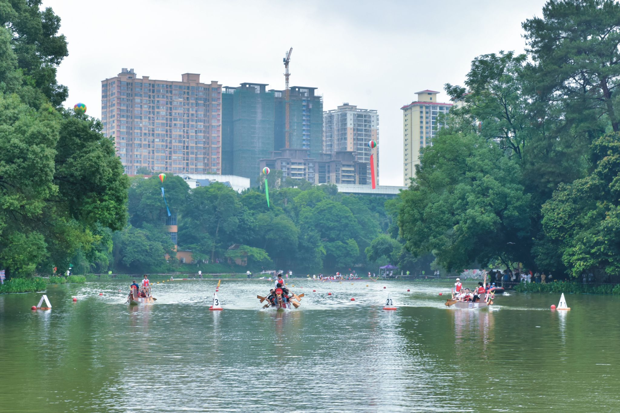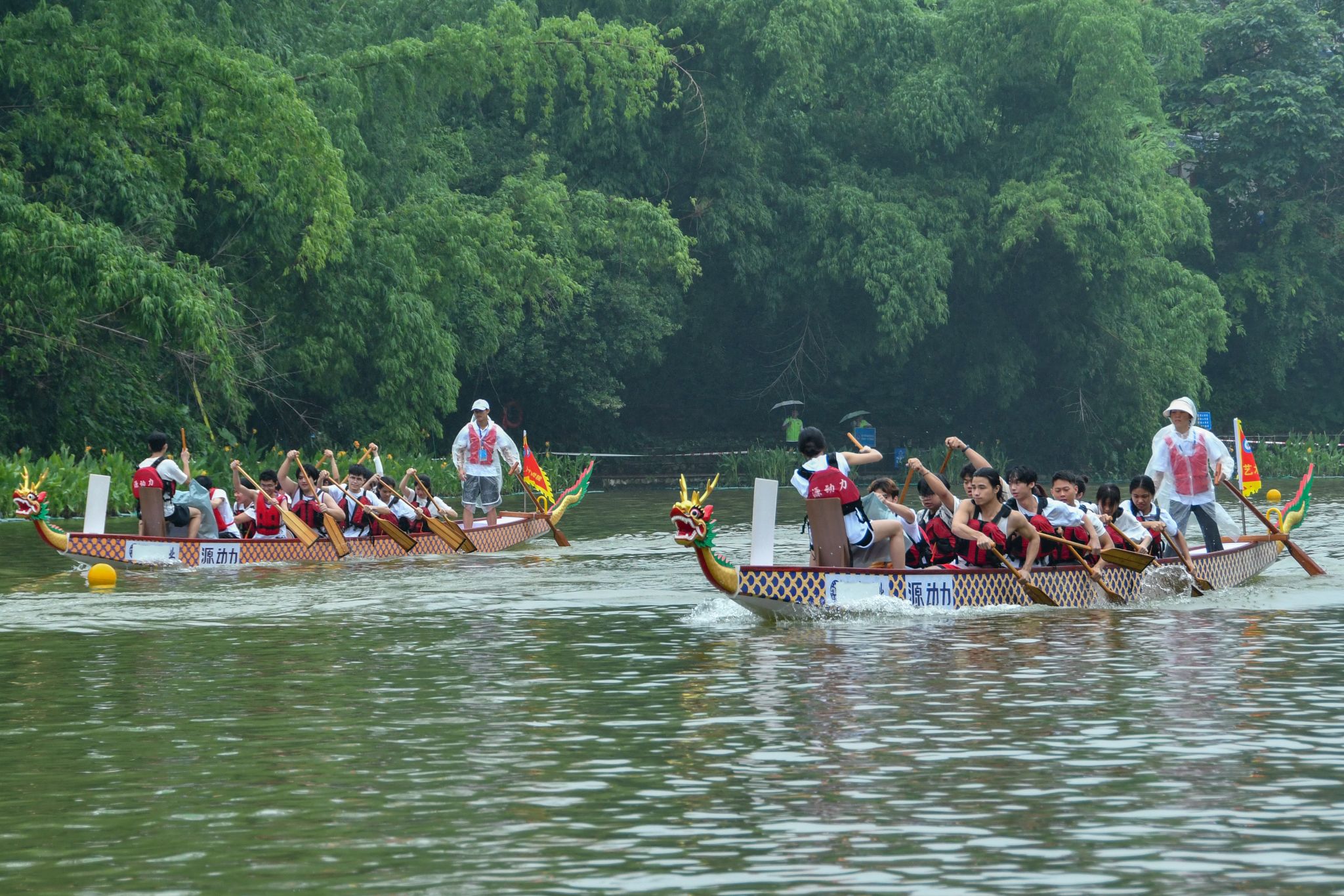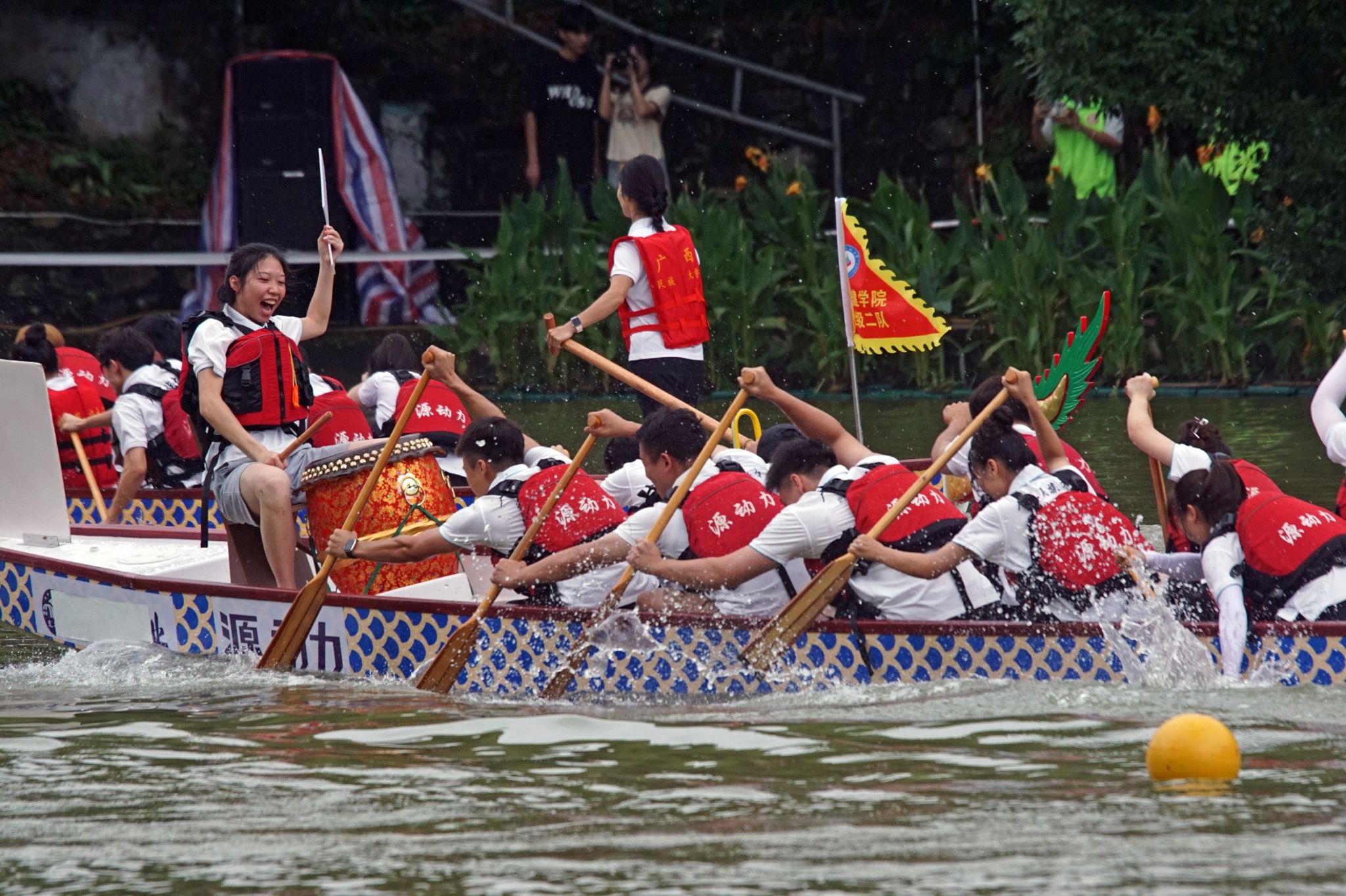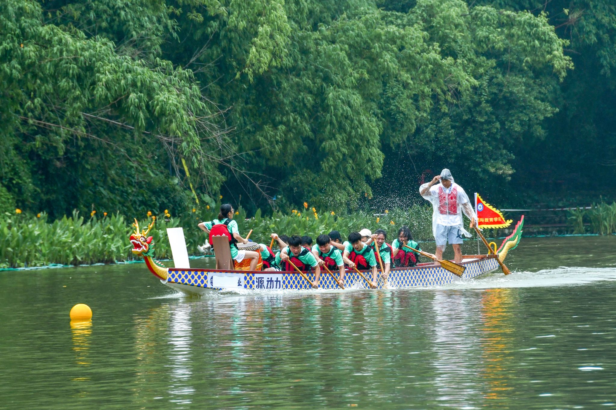 本次校园龙舟赛比赛项目为200米直道赛水上龙舟赛,共有32支学生队伍、 22支教职工队伍参赛。经过激烈比拼,国有资产管理处代表队获教职工男女混合组冠军,国际教育学院代表队获学生甲组男女混合组冠军,体育与健康科学学院2022级二队获学生乙组男女混合组冠军。