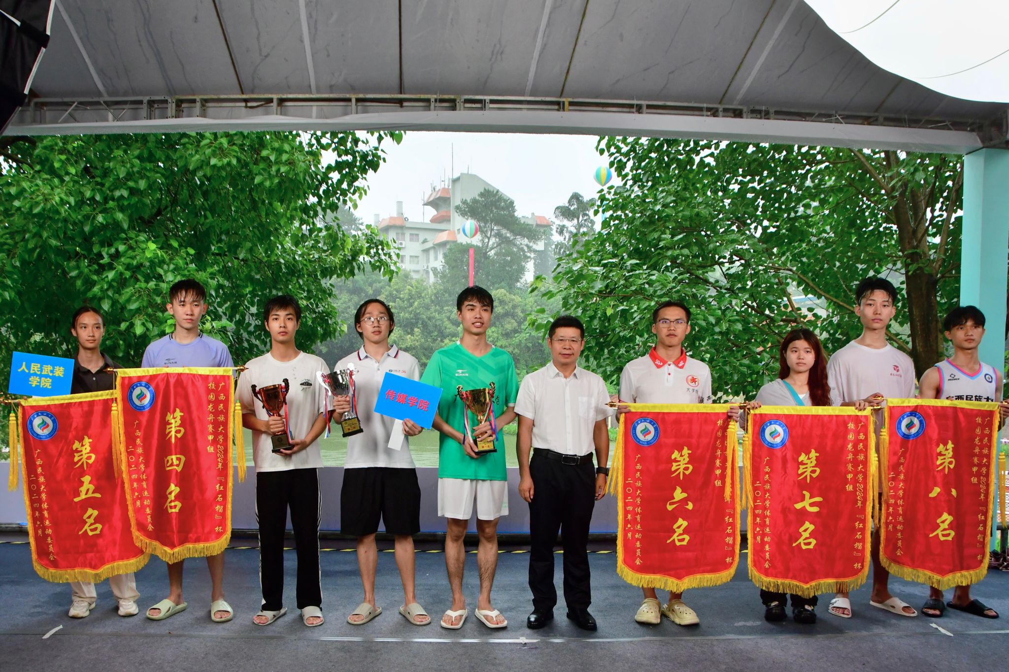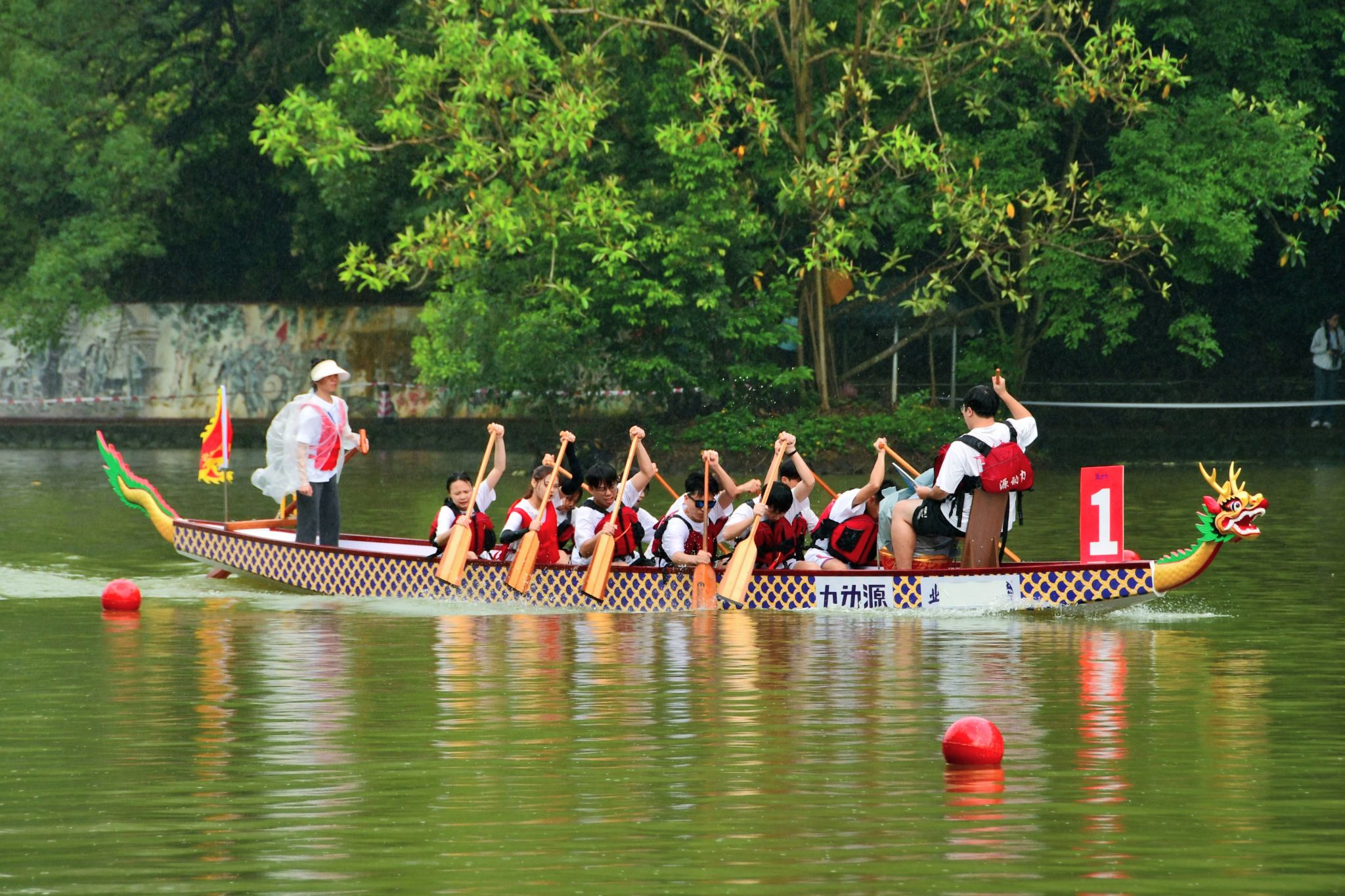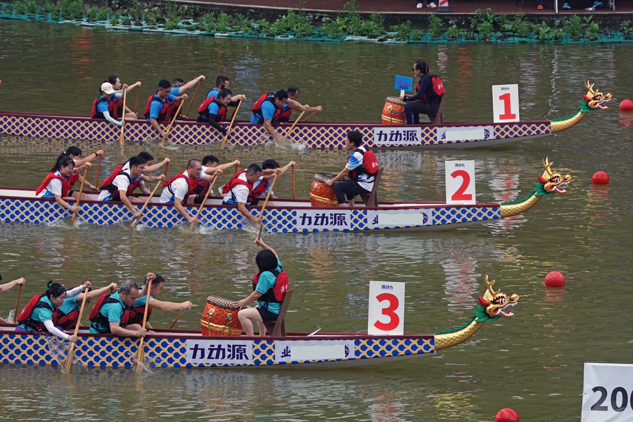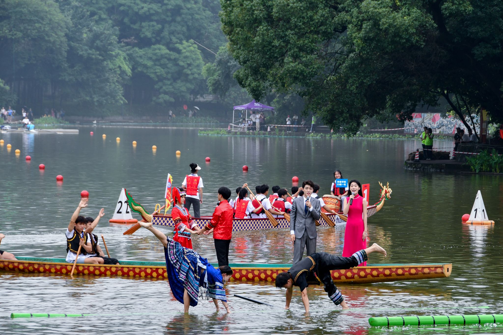 本次校园龙舟赛比赛项目为200米直道赛水上龙舟赛,共有32支学生队伍、 22支教职工队伍参赛。经过激烈比拼,国有资产管理处代表队获教职工男女混合组冠军,国际教育学院代表队获学生甲组男女混合组冠军,体育与健康科学学院2022级二队获学生乙组男女混合组冠军。