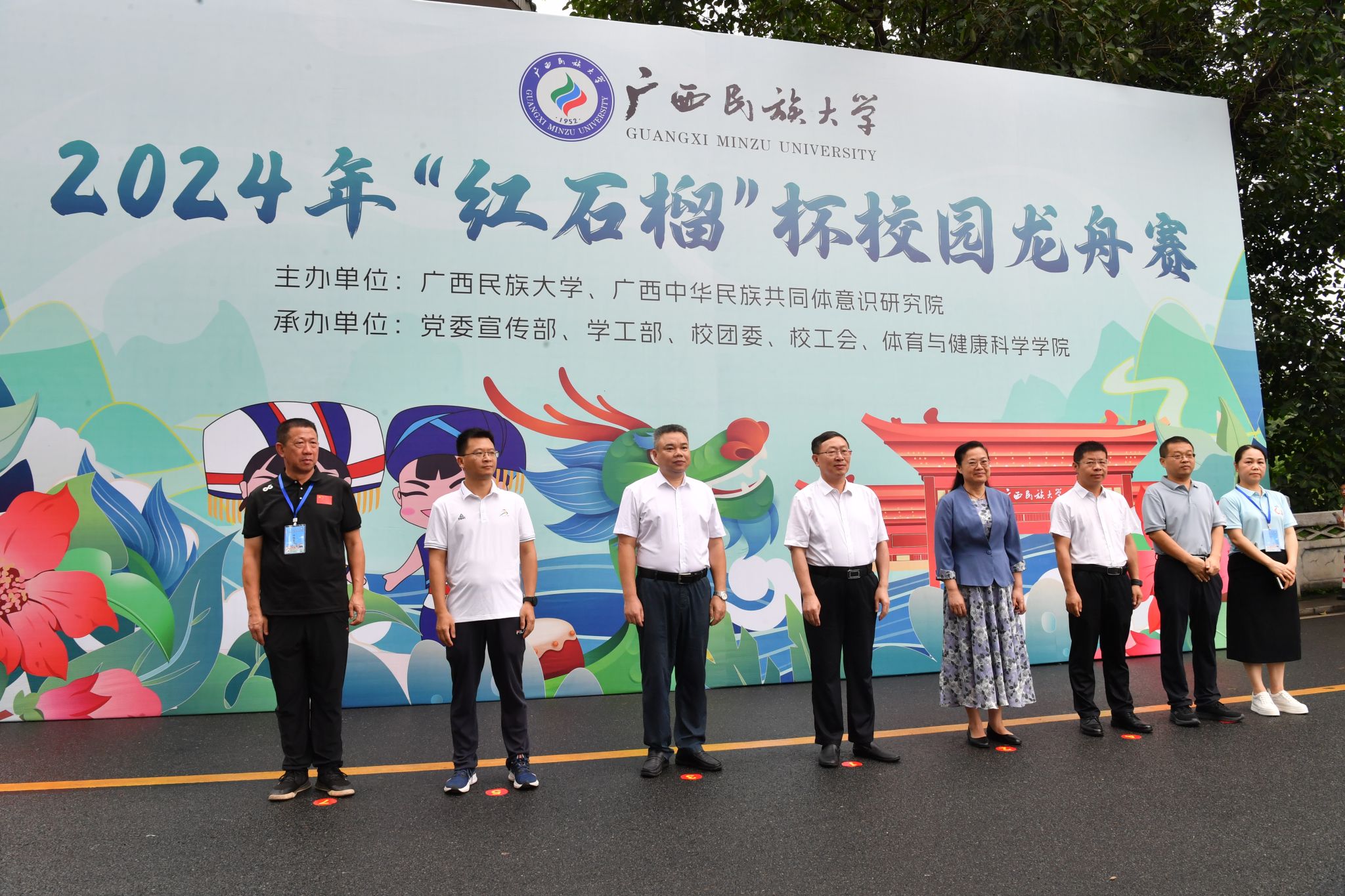 【大学生通讯社报道】端午佳节赛龙舟,百舸争流展豪情。6月8日上午,beat365英国官方网站2024年“红石榴”杯校园龙舟赛在相思湖举行。学校党委书记卞成林宣布龙舟赛开幕,校长韦仕珍,校领导陈铭彬、邓国彬和有关部门负责人及师生代表参加活动。龙舟赛作为学校传统文化品牌活动之一,至今历时四届。