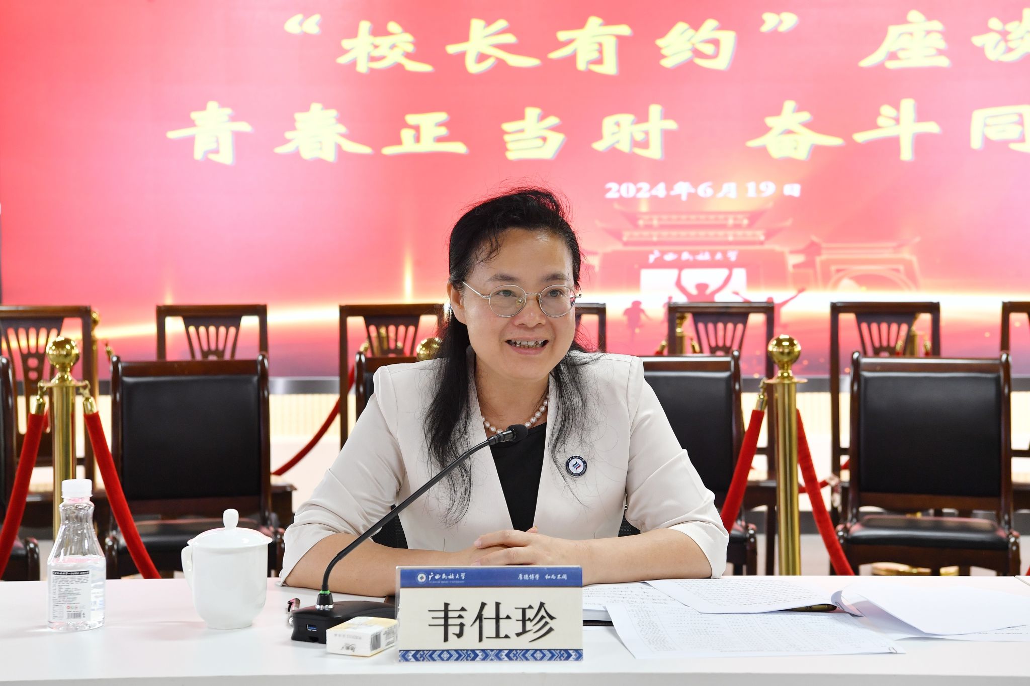 韦仕珍表示,广大青年学子要锤炼品德、树立远大志向、博学求知、弘扬“和合”文化,争做社会主义核心价值观的坚定践行者,成为中华优秀传统文化的继承者,她寄语大家志存高远、不断追求与探索新领域、超越自我,为踏入更高层次的学术殿堂不懈奋斗。