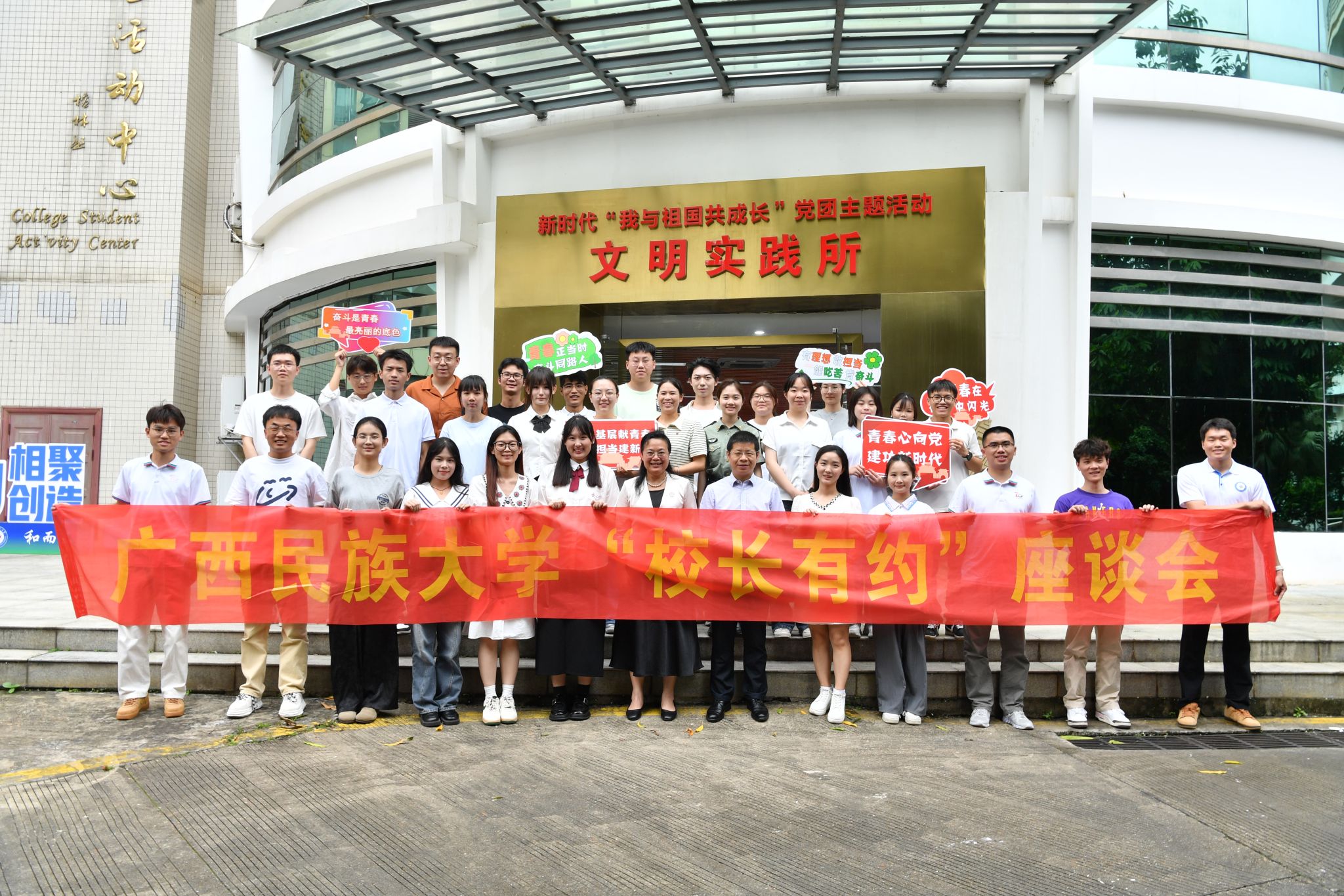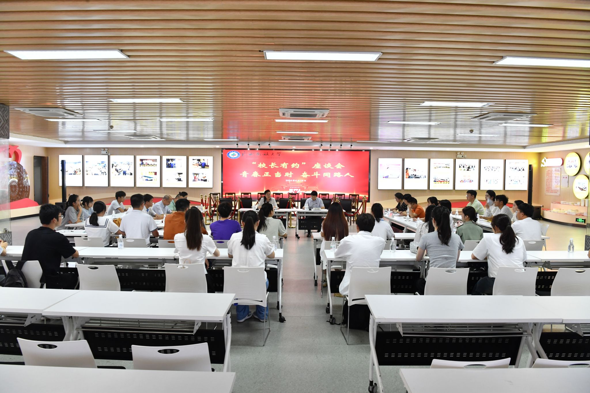 【大学生通讯社报道】6月19日下午,beat365英国官方网站“校长有约”座谈会在相思湖校区新时代“我与祖国共成长”党团主题活动文明实践所召开,校长韦仕珍出席座谈会并向学生代表赠送书籍《习近平与大学生朋友们(第二卷)》,校党委副书记邓国彬主持会议,2024届毕业生代表参加座谈会。