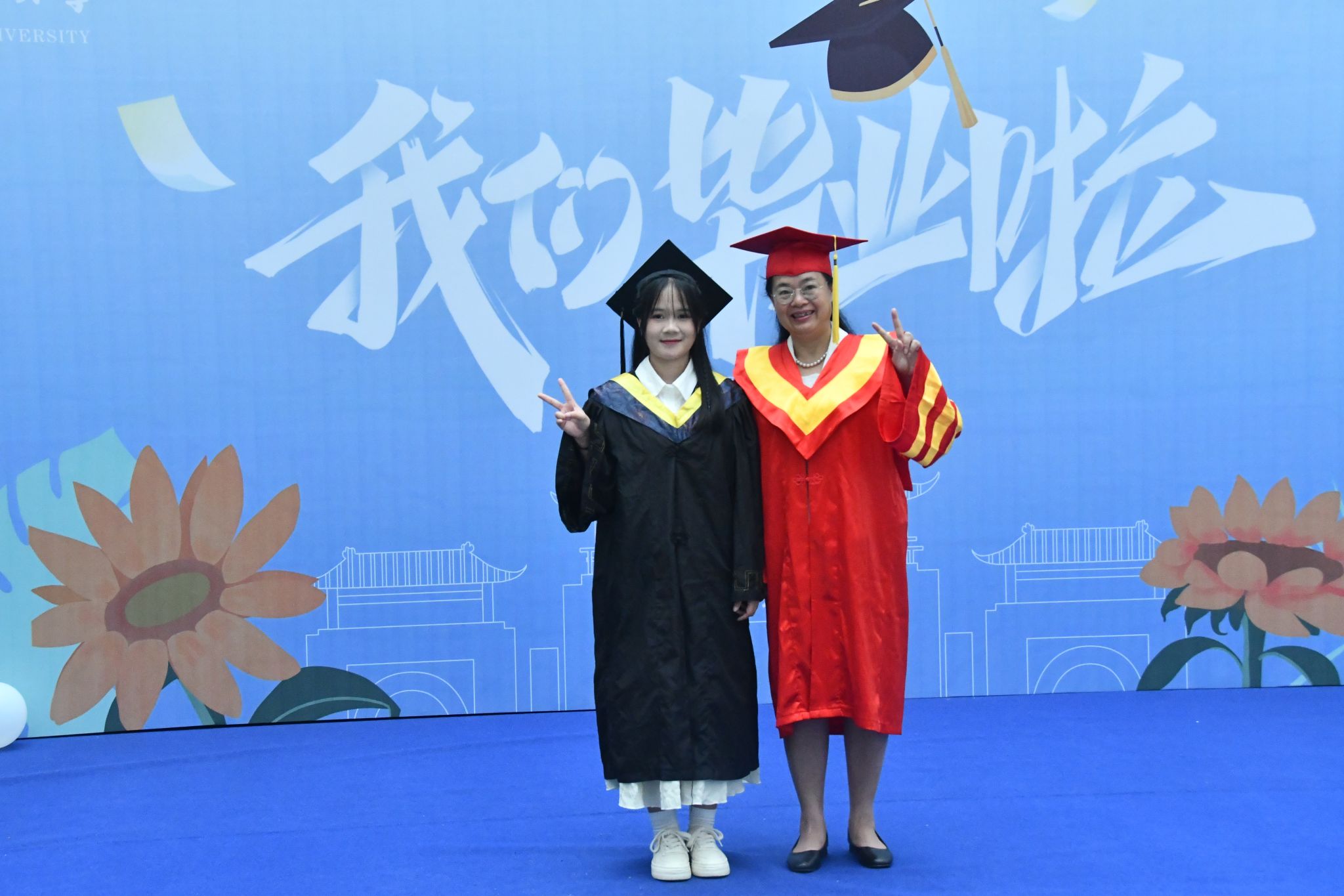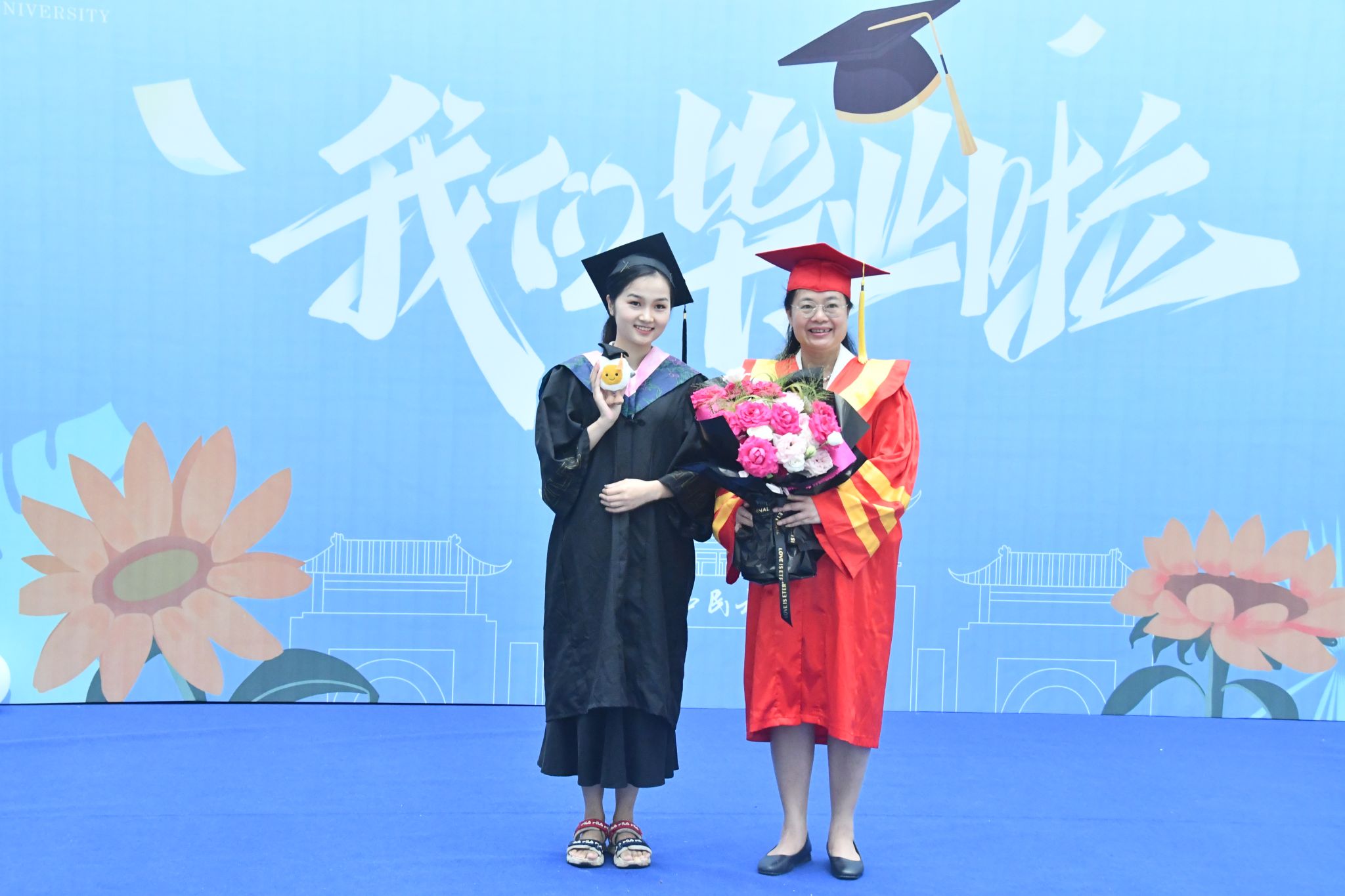 【大学生通讯社报道】离别钟声敲响,毕业如期而至。6月25日上午,校长韦仕珍与毕业生们在相思湖校区文化研习基地同框合影,共同留下青春印记。