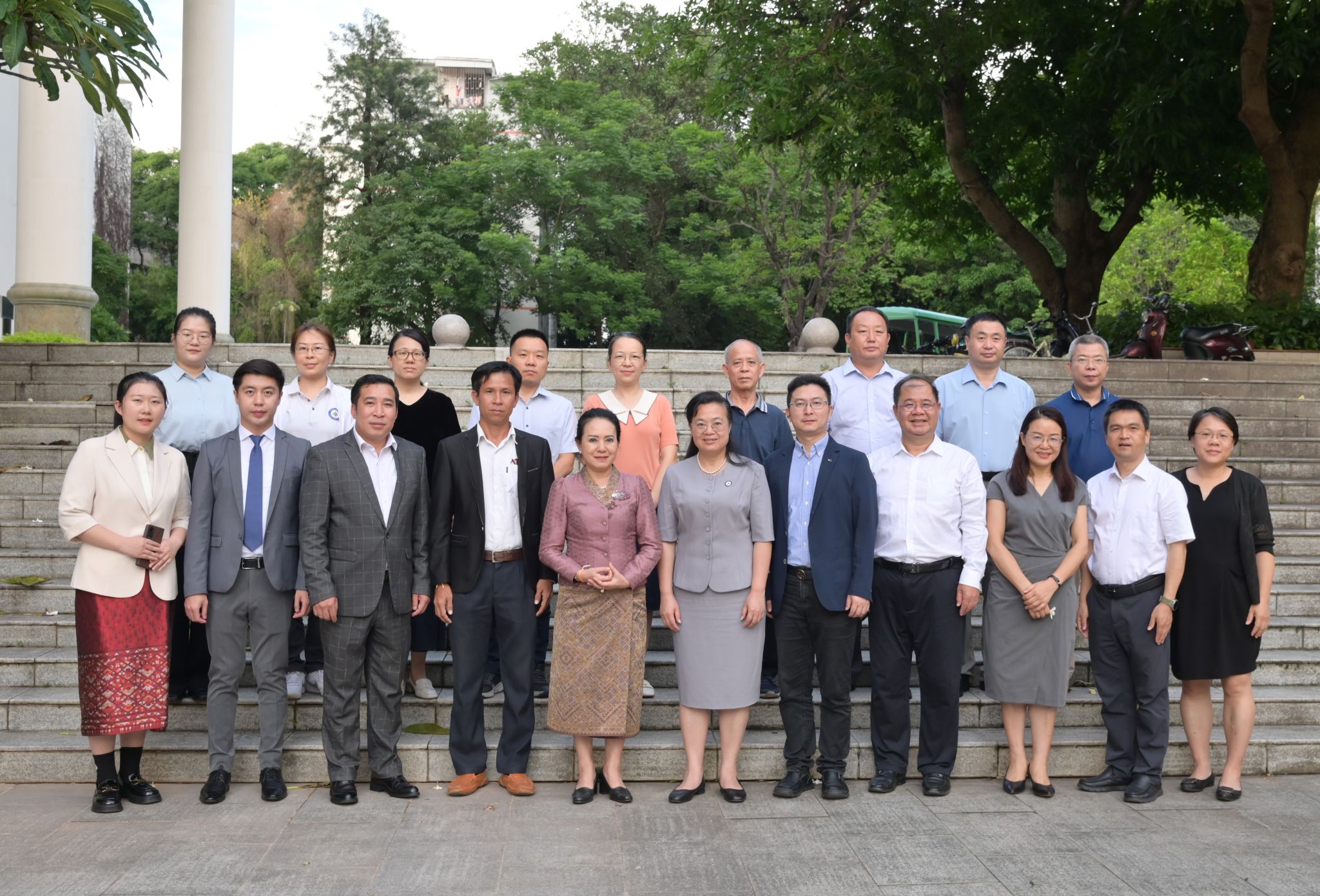 7月3日下午,beat365英国官方网站校长韦仕珍会见老挝国家社会与经济科学院副院长康拉曦•乔本潘一行。双方在国际教育综合楼一楼会议室召开座谈会。