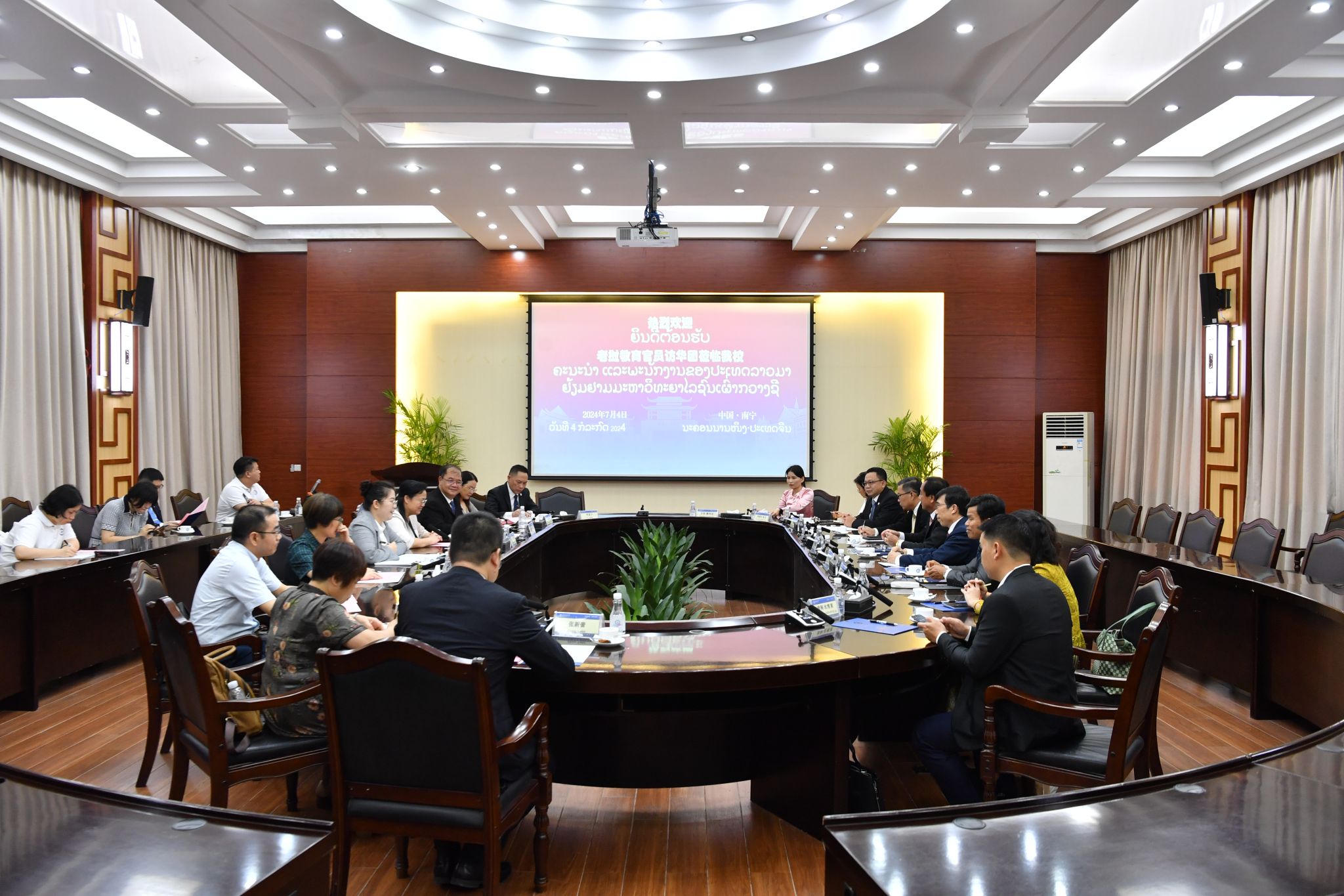 7月4日下午,beat365英国官方网站校长韦仕珍会见由老挝教育体育部副部长桑拉•潘卡翁、老挝国立大学校长德沙努腊•散杜昂德等组成的老挝教育官员访华团一行。座谈交流会在国际合作与交流处会议室举行。