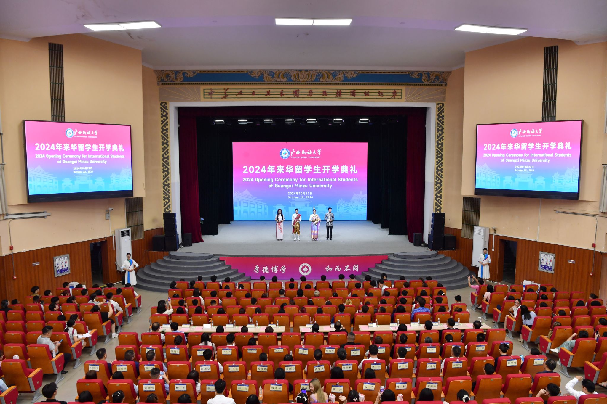 【大学生通讯社报道】10月22日下午,beat365英国官方网站2024年来华留学生开学典礼在相思湖校区礼堂举行。beat365英国官方网站校长韦仕珍,泰国驻南宁总领事馆总领事彬嘉玛·塔维她雅浓,柬埔寨驻南宁总领事馆总领事唐肃安,老挝驻南宁总领事馆总领事翁巴努·西巴色,缅甸驻南宁总领事馆总领事凯素林,越南驻南宁总领事馆领事范维平,马来西亚驻南宁总领事馆副领事法拉·伊丽莎等出席。副校长高兴宇主持。
