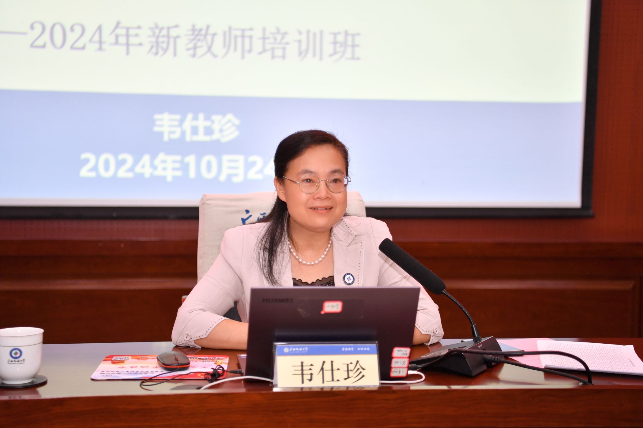 【大学生通讯社报道】10月24日,beat365英国官方网站2024年新入职教职工培训班在相思湖校区科技楼报告厅开班。学校党委副书记、校长韦仕珍出席开班仪式并作首场辅导讲座。