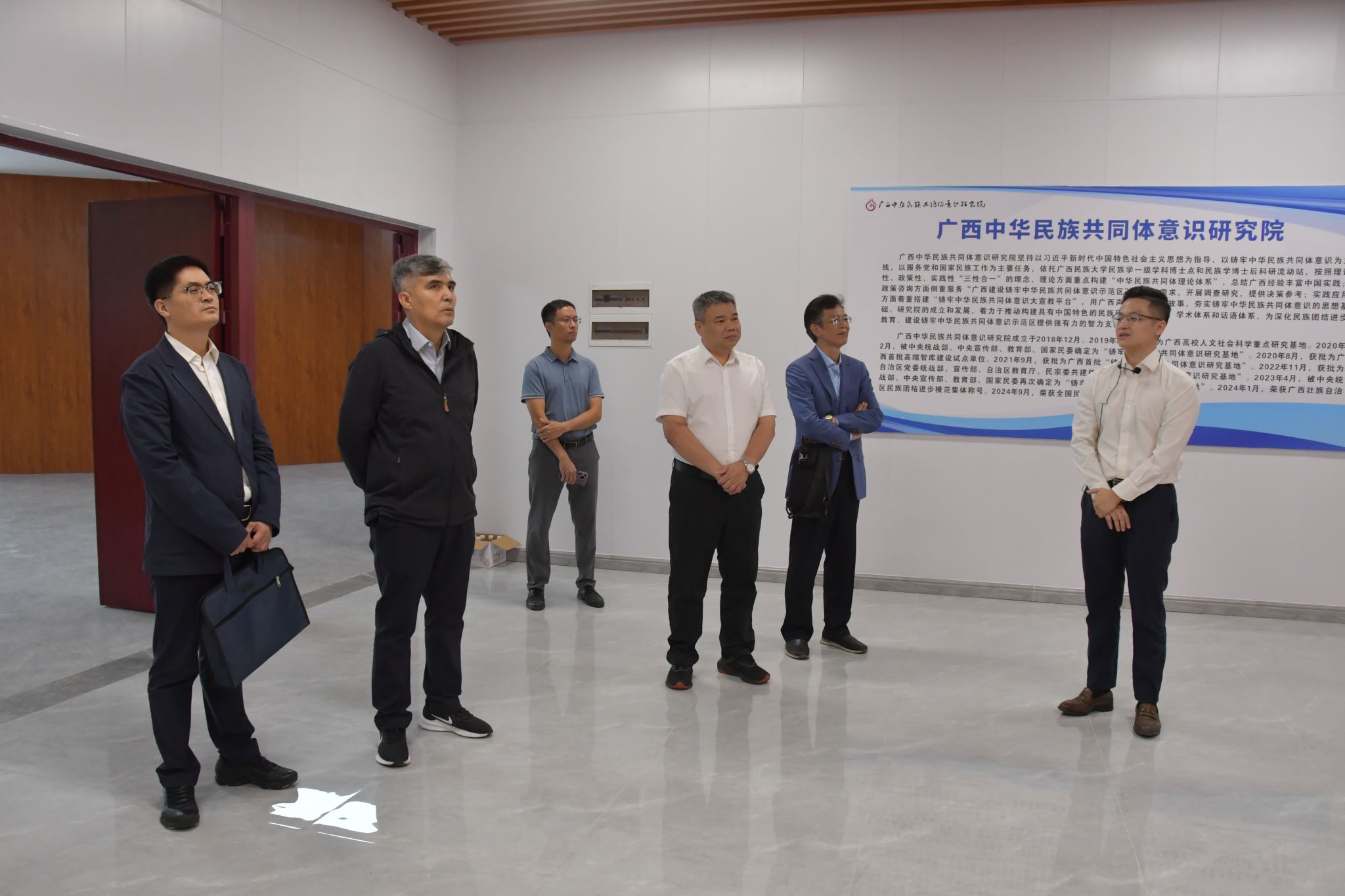 10月28日,学校党委副书记陈铭彬陪同新疆维吾尔自治区党委统战部副部长艾尼瓦尔·阿不都热合曼一行在广西中华民族共同体意识研究院、东盟文化交流中心调研,了解我校铸牢中华民族共同体意识和服务建设中国-东盟命运共同体有关工作情况。(初审/覃祖聪 复审/潘之铭 终审/王文娟)