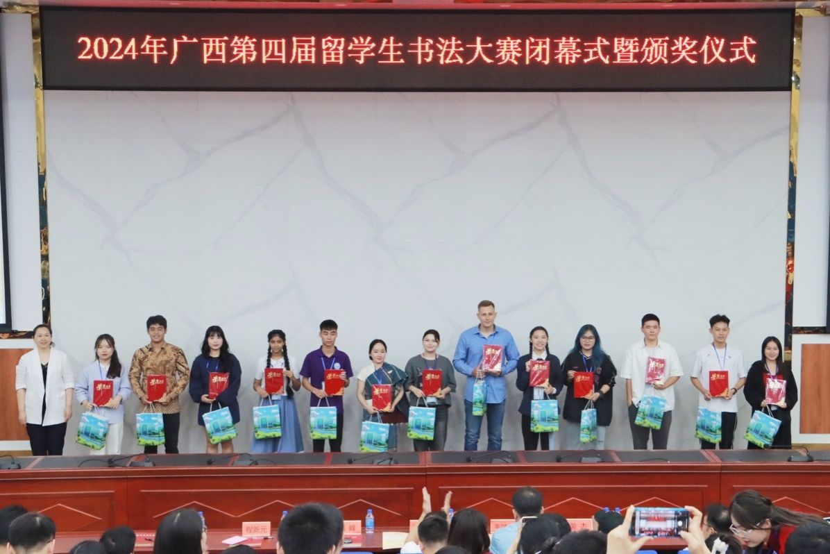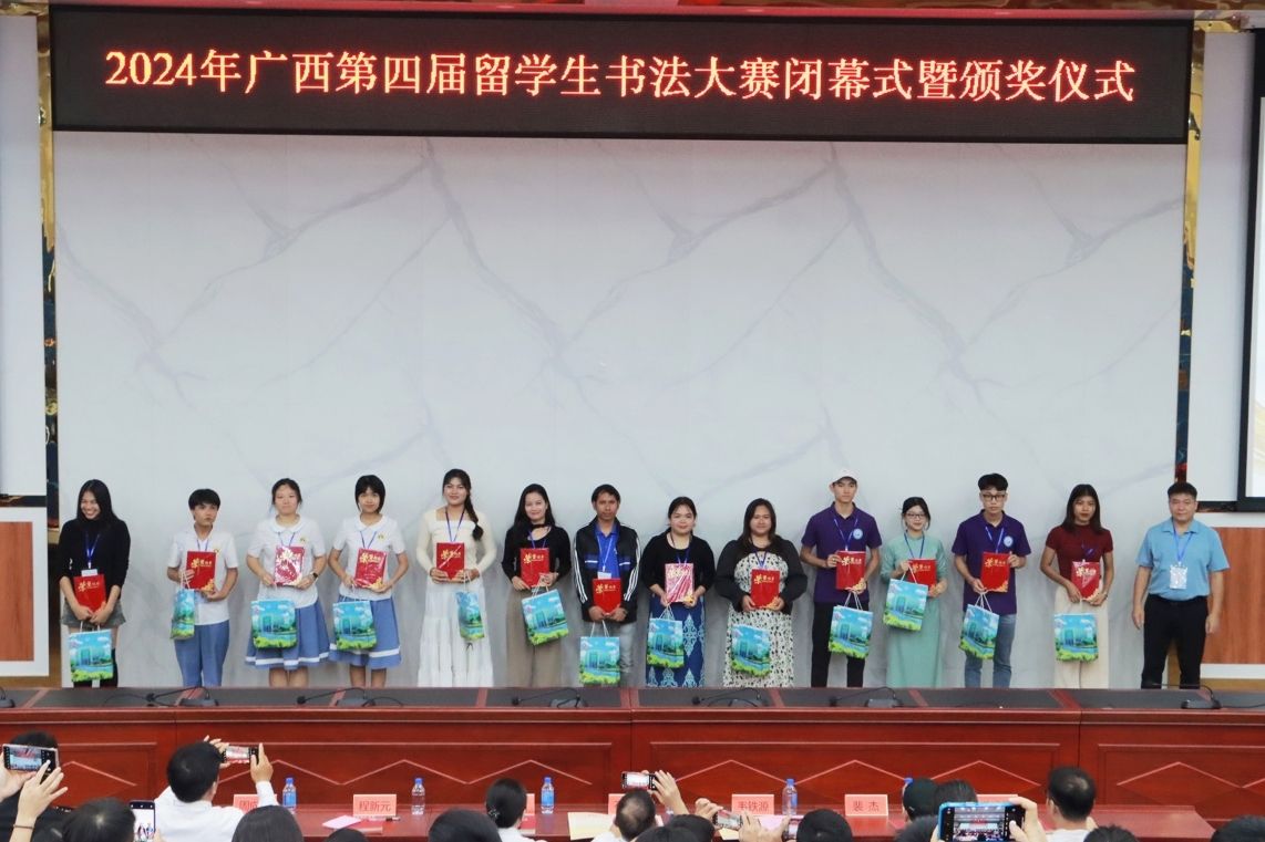 此次比赛吸引了广西区内28所高校的127名留学生参赛,选手来自俄罗斯、巴基斯坦、尼日利亚、泰国、越南、老挝等国家。我校积极组织,选派越南留学生阮河芳、陈氏日夏、阮氏明秋,老挝留学生梁礼赛、李黛参赛。赛前,留学生们认真备赛,不断打磨练习,老师们悉心指导,提供反馈和鼓励;比赛过程中,留学生们认真书写,展现汉字书写技巧,最终斩获3个特等奖、1个一等奖和1个二等奖。(初审:周艳鲜 编辑:孙畅 复审:潘之铭 终审:王文娟)