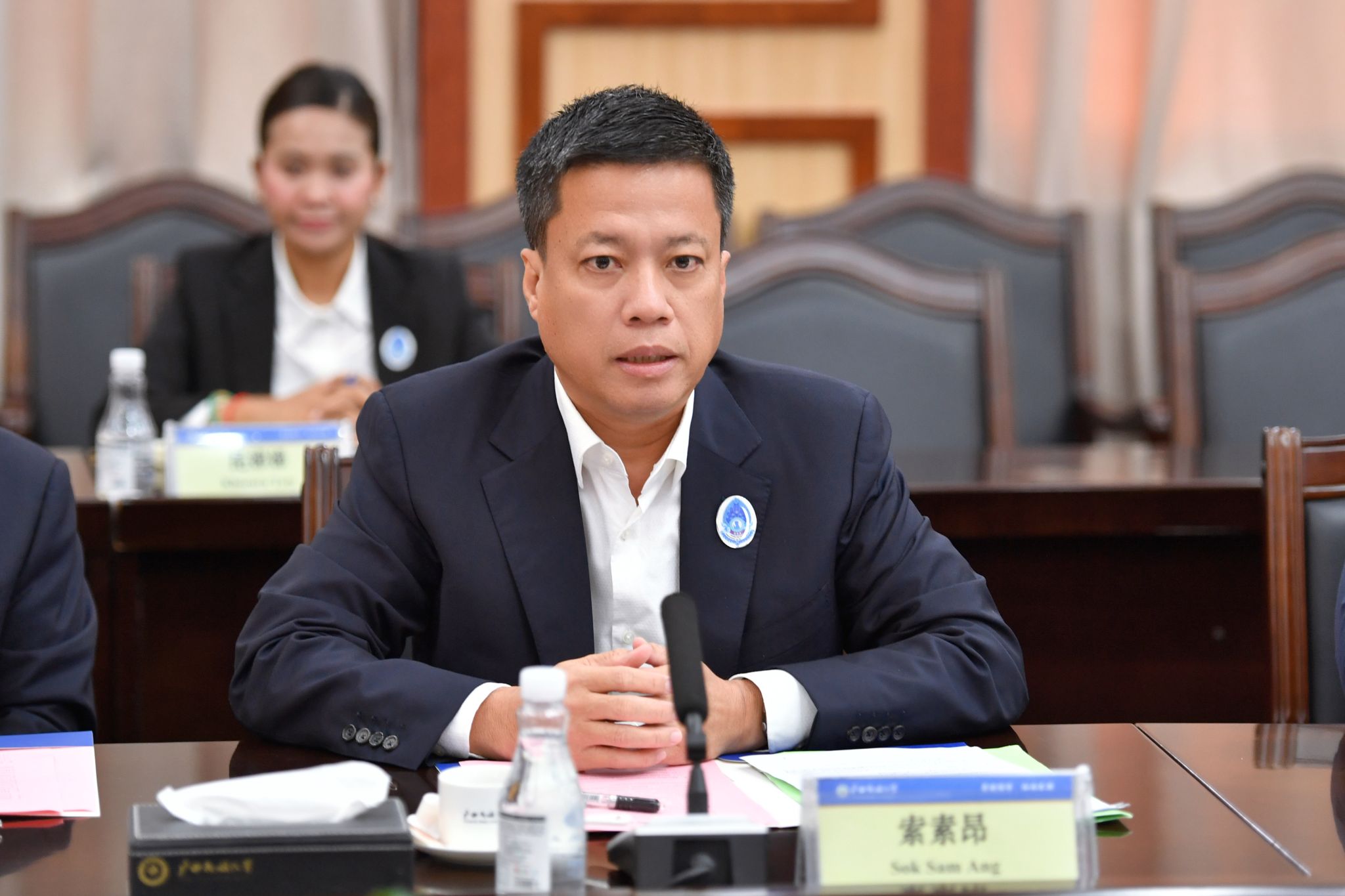 索素昂对韦仕珍校长的热情招待表示感谢。他表示,柬中两国交往历史悠久,今年是柬中两国建交66周年和柬中人文交流年,双方展开了不同领域的交流合作。此次代表团到访beat365英国官方网站旨在进一步扩展奖学金项目的合作机会,确保奖学金项目的可持续性,维持双方长期稳定的合作,为柬埔寨学生能够来到广西继续深造寻找更多机会。