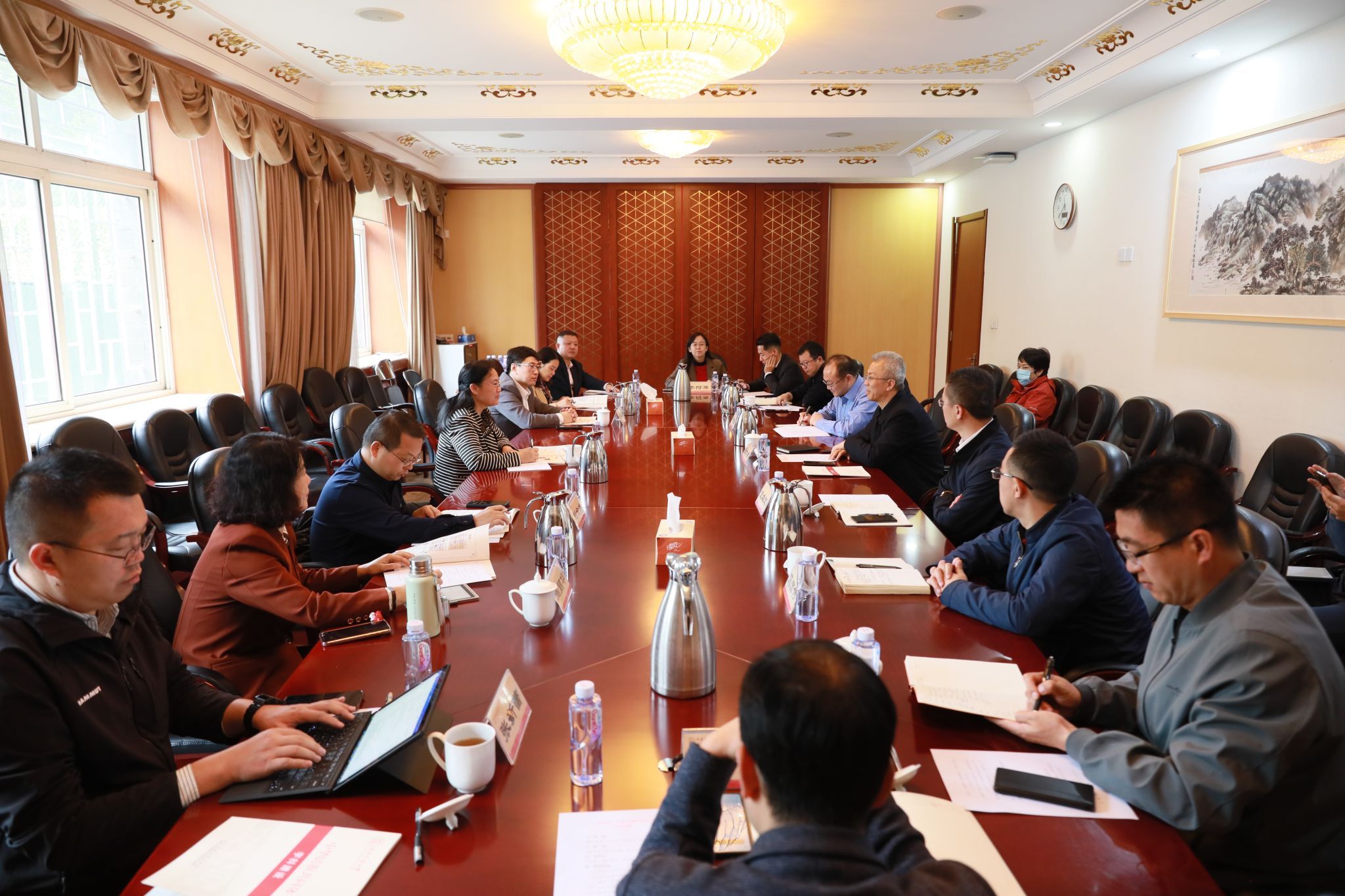 11月15日上午,beat365英国官方网站党委副书记、校长韦仕珍带队到中央民族大学交流,中央民族大学党委副书记、校长强世功在海淀校区3号办公楼一层会议室与韦仕珍一行座谈交流。中央民族大学党委常委、副校长王雄军、甘明刚,beat365英国官方网站党委常委、副校长高兴宇等参加座谈。