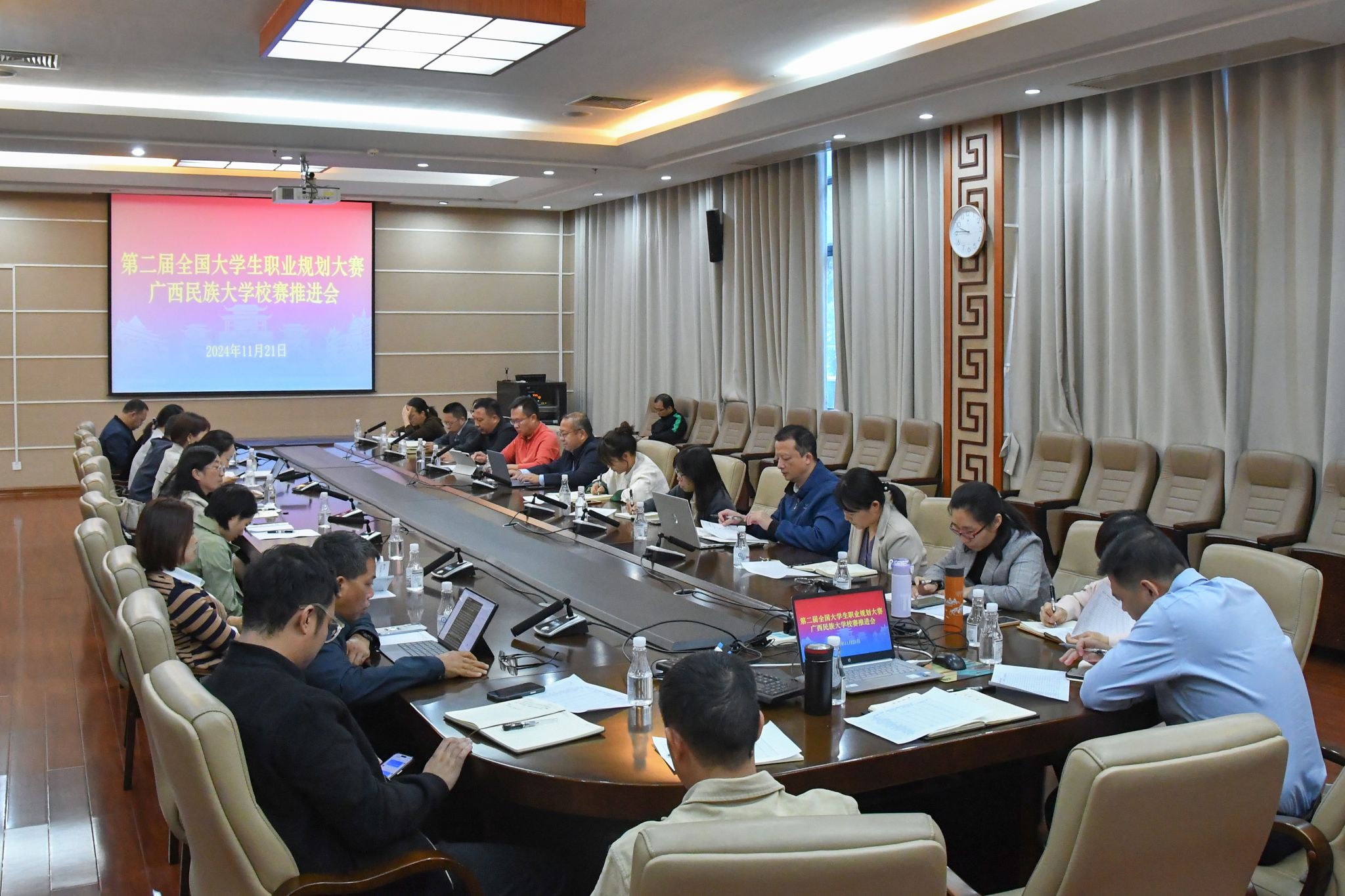 11月21日,姜明国在第二届全国大学生职业规划大赛校赛推进会上强调,各学院要高度重视,抓好赛事质量,促进生涯教育与就业育人相融通;结合学院特色,提升学生专业技能水平,实现以赛促学、以赛促教;发挥教师引领作用,提高学生就业竞争力,促进高质量充分就业。(初审/陆惠君 复审/潘之铭 终审/王文娟)