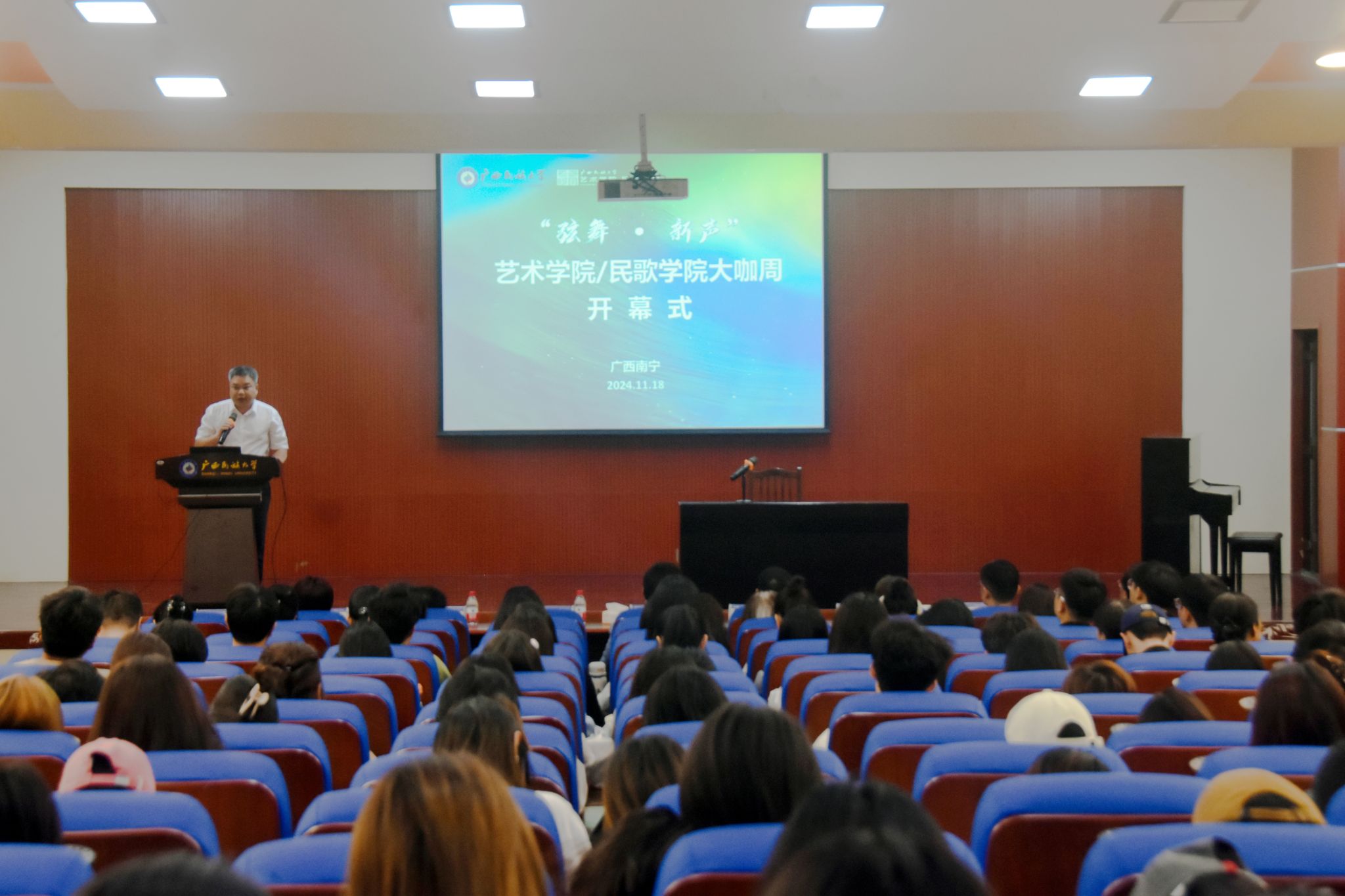 11月18日,学校党委副书记陈铭彬在艺术学院/民歌学院“弦舞·新声”大咖周开幕式上指出,学校始终以铸牢中华民族共同体意识为主线,在办学育人实践中传承中华优秀传统文化,致力于保护民歌资源,培养具有人文、科学和民族团结精神的民歌人才,为推动中华文化发展贡献力量。(初审/吴小军 复审/潘之铭 终审/王文娟)