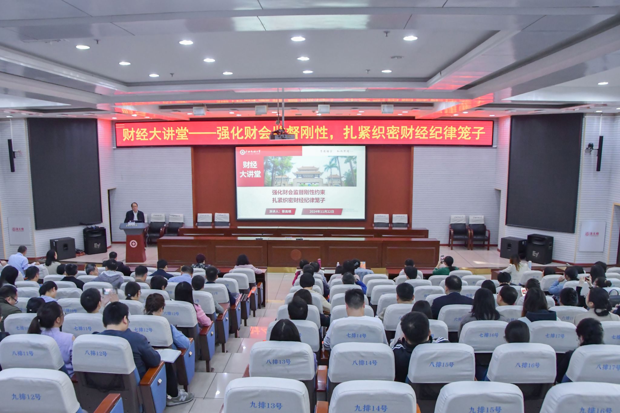 11月22日,学校党委副书记、纪委书记韦雪芳,学校党委常委、副校长蔡高根出席“强化财会监督刚性约束,扎紧织密财经纪律笼子”财经大讲堂,强调从源头抓起,坚持“全校一盘棋”思想,构建“大监督”体系,压实监督责任,扎实推进财经工作,抓好内控建设,健全全过程预算绩效管理机制,强化预算刚性约束,压减公用支出,提升管理效能,提高资金使用效益。(初审/黄素心 复审/潘之铭 终审/王文娟)