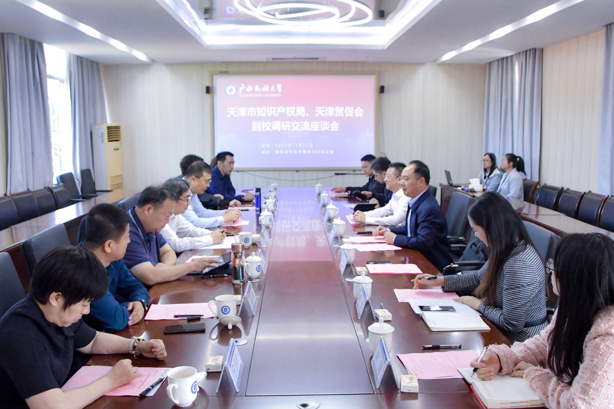 11月21日,学校党委常委、副校长何立荣会见天津市知识产权局局长任洪源一行。双方就中国-东盟法学院建设、涉外法治人才培养、服务外资企业、落实国家战略等方面进行深入交流。(初审/陈星 复审/潘之铭 终审/王文娟)