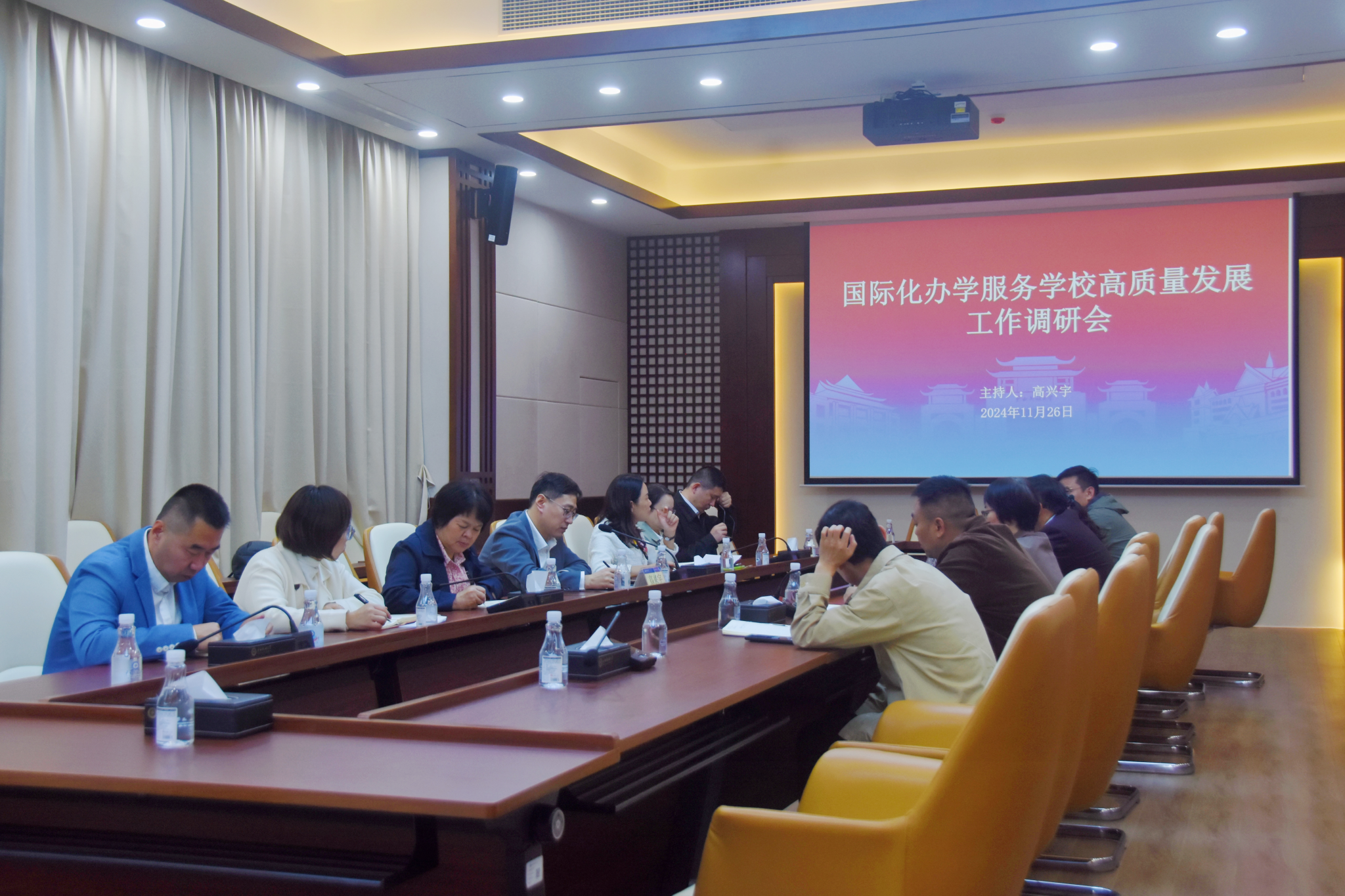 11月26日,高兴宇在国际化办学服务学校高质量发展工作调研会上表示,要进一步落实全国教育大会精神和学校第四次党代会精神,充分总结学校“十四五”国际化发展成果,为谋划“十五五”国际化发展目标做好前期调研。(初审/张玉贞 复审/潘之铭 终审/王文娟)