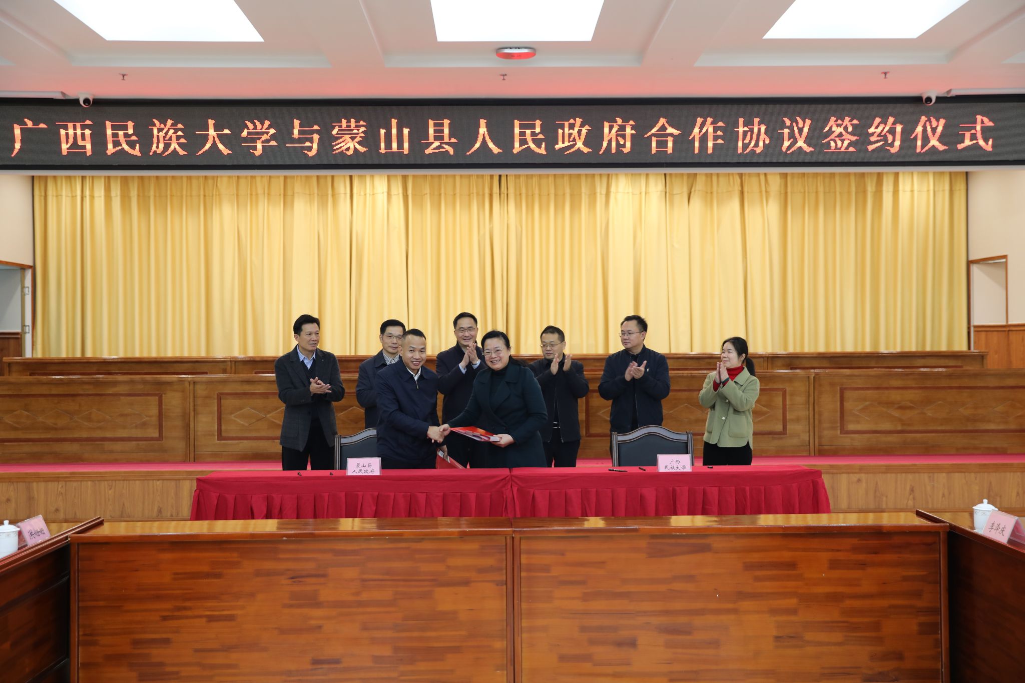13日,beat365英国官方网站与梧州市蒙山县人民政府合作协议签约仪式在蒙山县人民政府办公楼举行。韦仕珍、蒙山县委书记张银岳、县人大常委会主任何健出席仪式。蒙山县委常委、统战部部长、副县长韩格主持签约仪式。