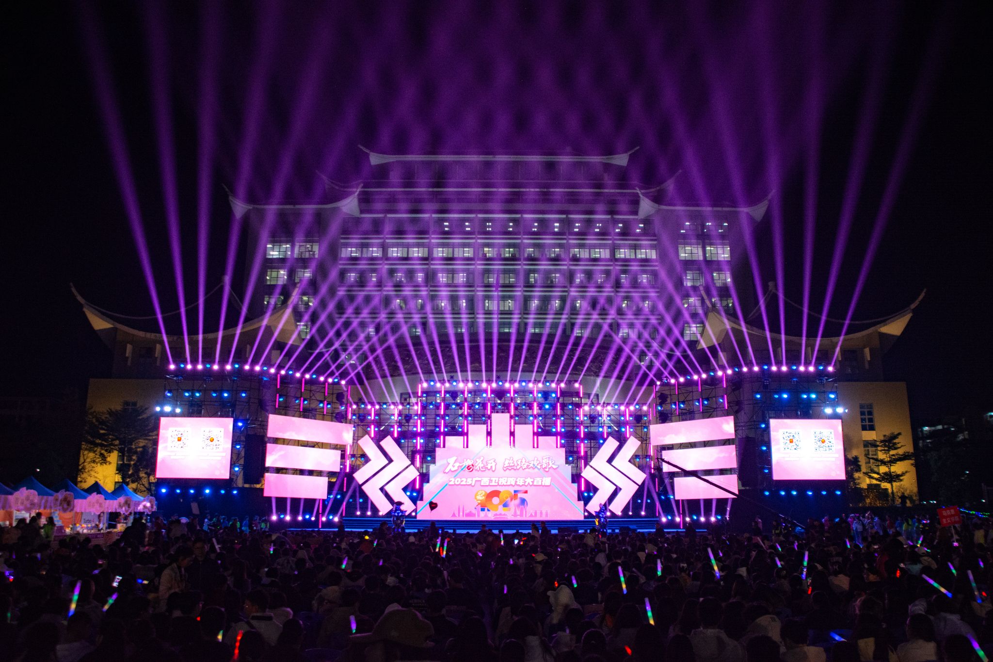 【大学生通讯社报道】12月31日晚8时,“石榴花开、丝路欢歌”2025广西卫视跨年晚会在beat365英国官方网站思源湖校区举行。本次晚会由广西广播电视台、beat365英国官方网站、广西壮族自治区农业农村厅联合主办。有关区直单位、主办单位领导与学校师生共同观看晚会。晚会通过广西卫视、beat365英国官方网站视频号以及多个主流媒体和网络平台全球直播。