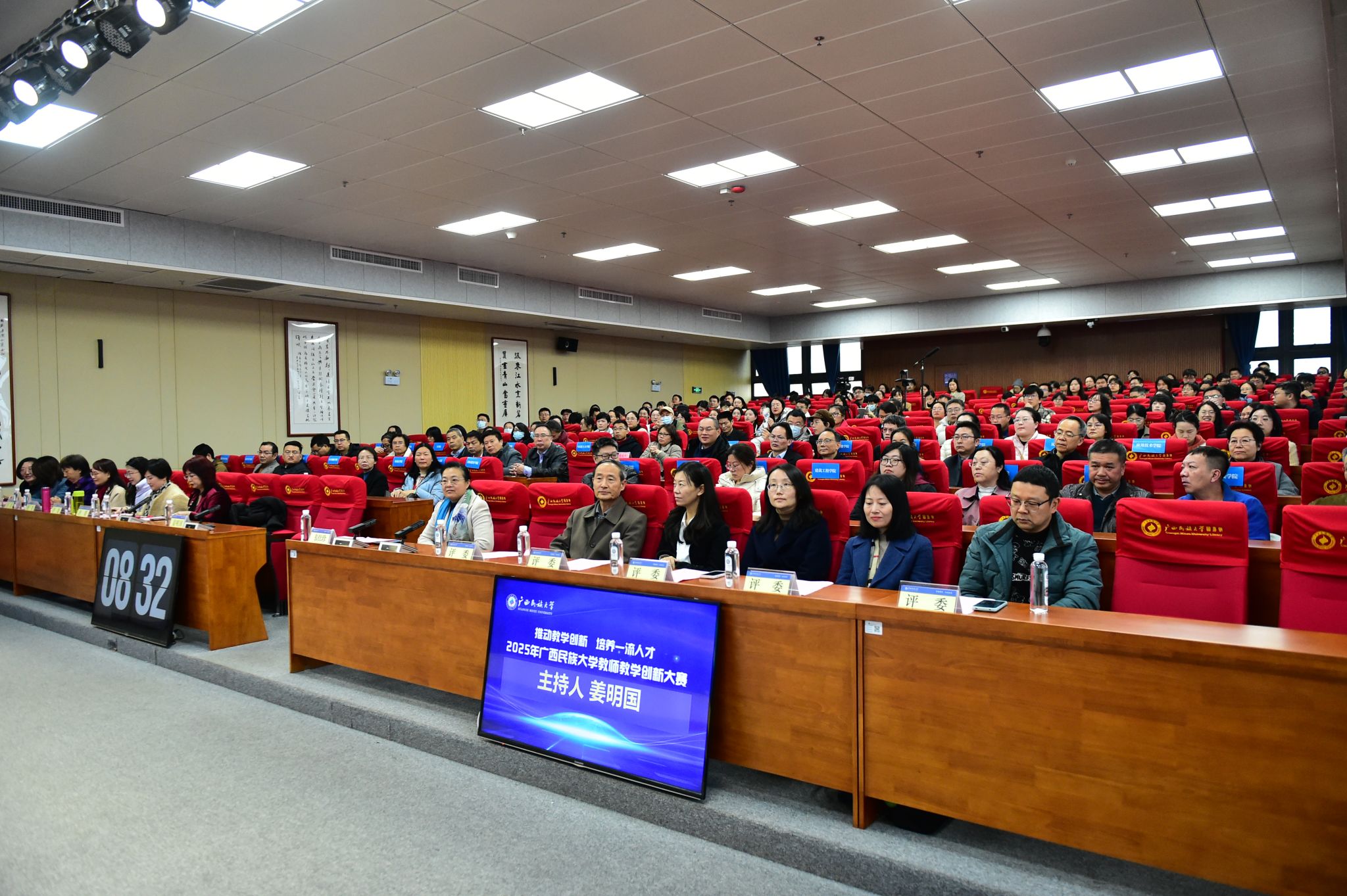 【大学生通讯社报道】1月11日上午,beat365英国官方网站2025年教师教学创新大赛开幕式在相思湖校区图书馆学术交流厅举行。学校党委副书记、校长韦仕珍出席开幕式并致辞。学校党委常委、副校长姜明国主持开幕式。中国农业大学、中国地质大学(北京)、暨南大学等多所区内外高校专家评委,我校各学院负责人及教师代表参加开幕式。