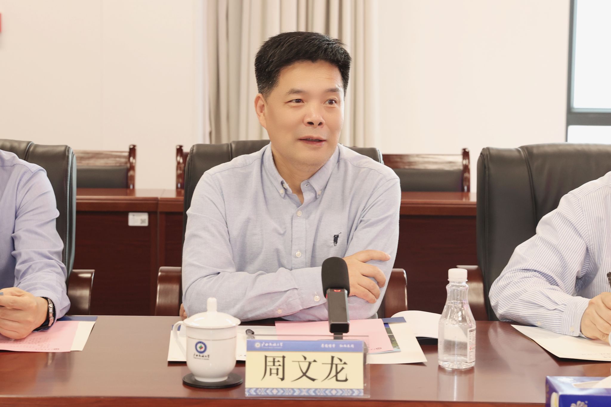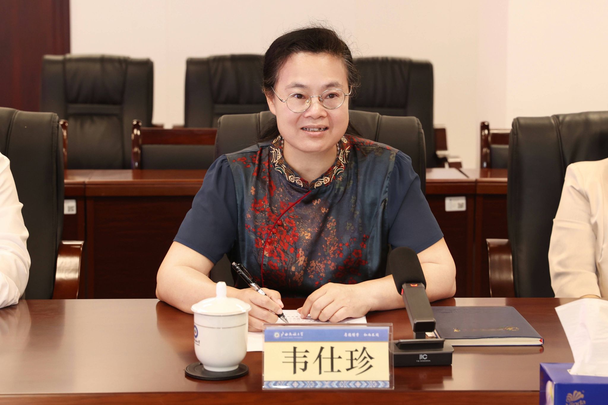 韦仕珍对周文龙一行的到来表示欢迎,从教育教学成果、国际合作交流等方面对我校的发展情况进行介绍。她表示,学校积极探索学科交叉融合发展,推进学校教育事业高质量发展,希望双方建立长效合作机制,为深化与东盟国家的交流注入新的活力,实现共进共赢。