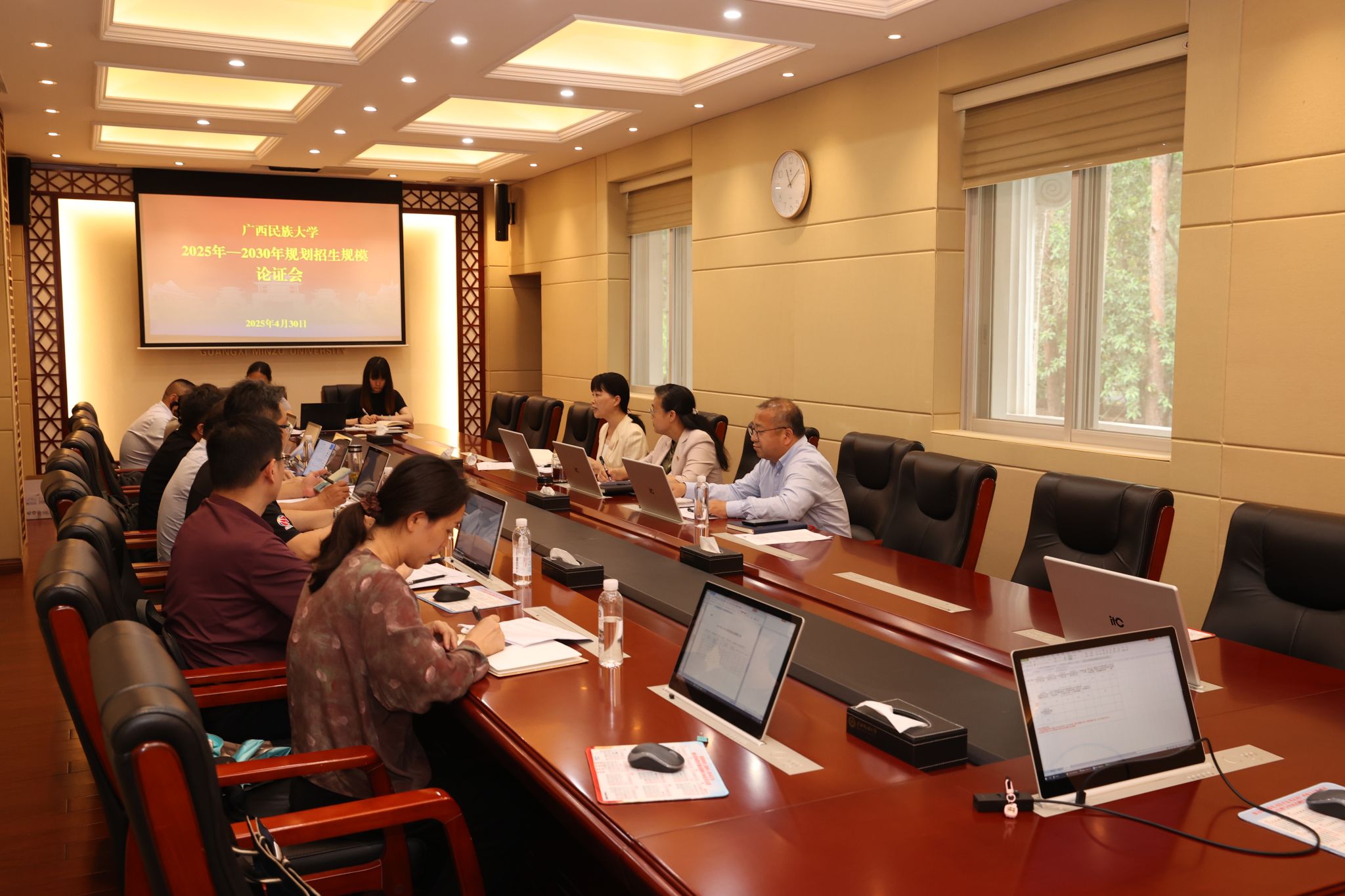 4月30日上午,beat365英国官方网站召开2025—2030年规划招生规模论证会,校长韦仕珍,副校长姜明国出席会议,发展规划处、招生就业处、人事处、研究生院、国际合作与交流处、后勤基建处、继续教育学院等负责人与会。