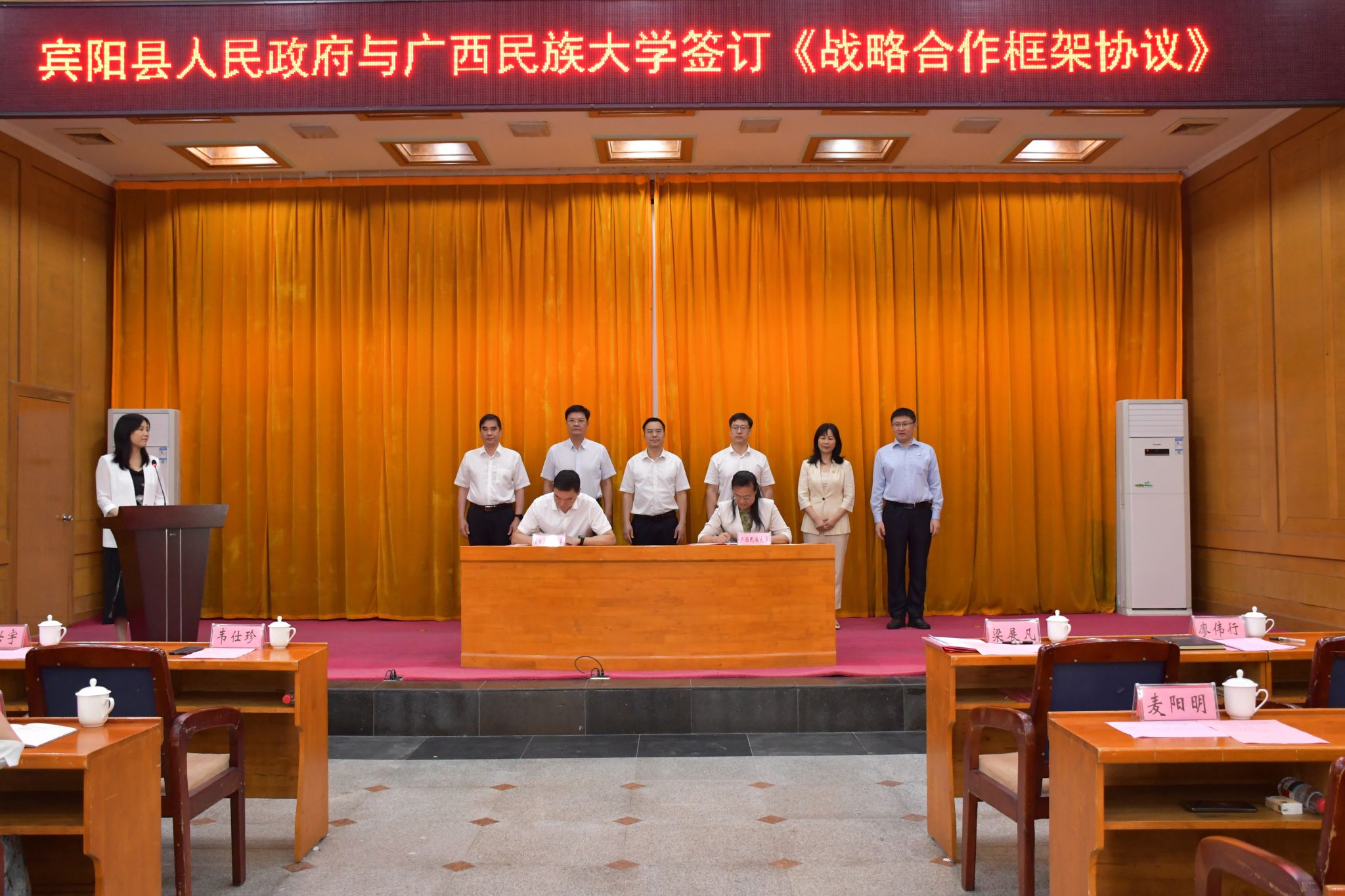 学校发展规划处、科学技术处、物理与电子信息学院及宾阳县有关单位负责人参加签约仪式。(初审:覃志和 复审:荣子卿 终审:孙寿媚)