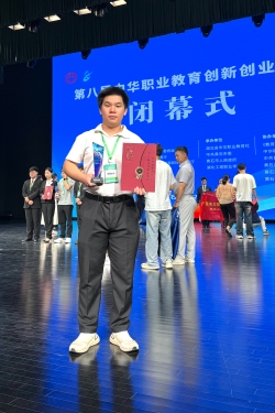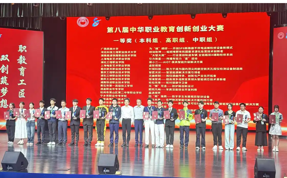 近日,第八届中华职业教育创新创业大赛全国现场总决赛在湖北黄石举行。beat365英国官方网站应用技术学院2024级自动化专业张籍文领衔的项目“为‘维’绸缪——开创SF6断路器不停电运维检修设备新模式”斩获一等奖。