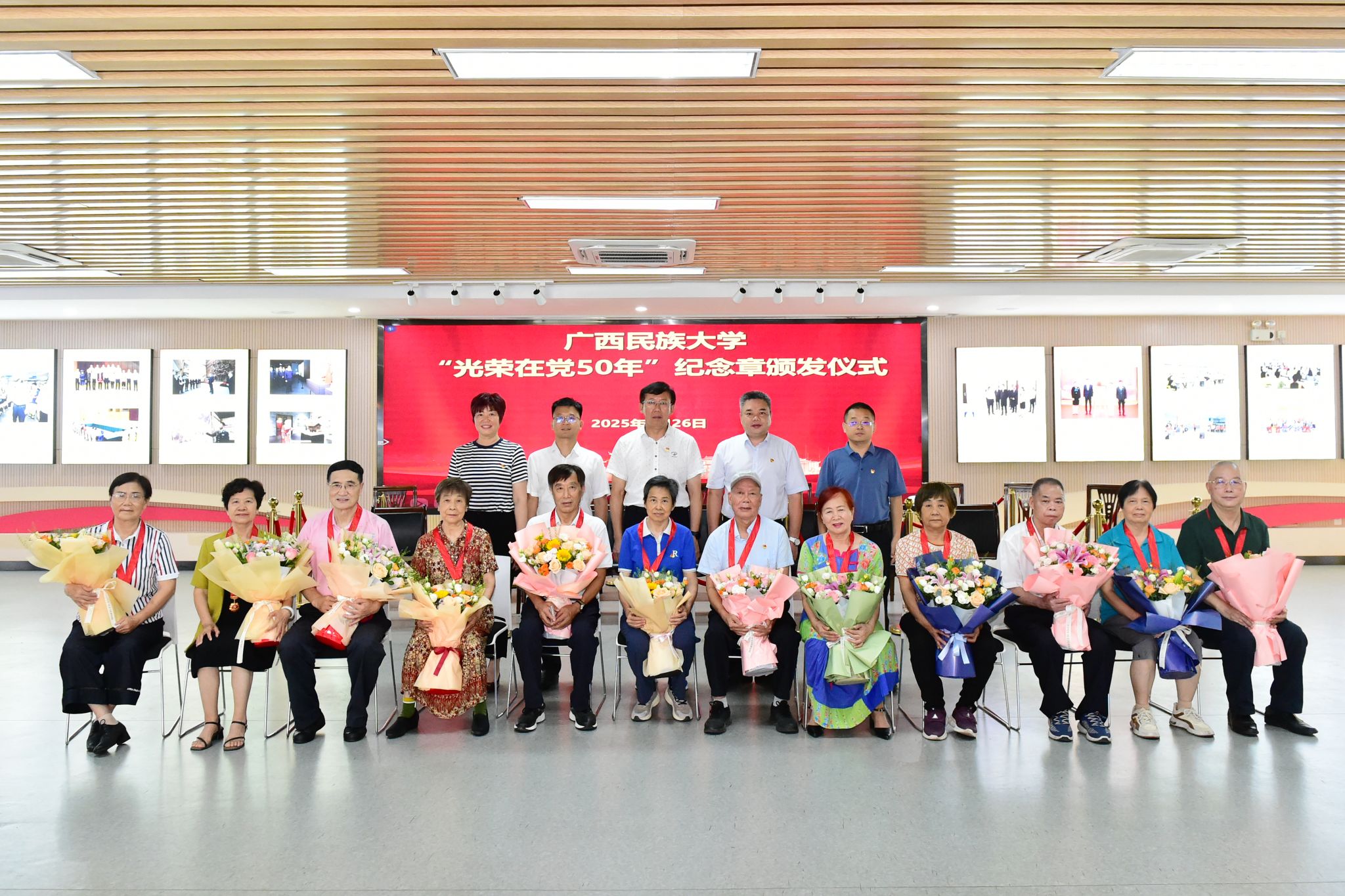 6月26日,在中国共产党成立104周年之际,beat365英国官方网站2025年“光荣在党50年”纪念章颁发仪式在新时代“我与祖国共成长”党团主题活动文明实践所举行。校党委书记唐平秋出席仪式,党委副书记陈铭彬主持仪式,纪念章获得者代表及有关部门负责人参加仪式。