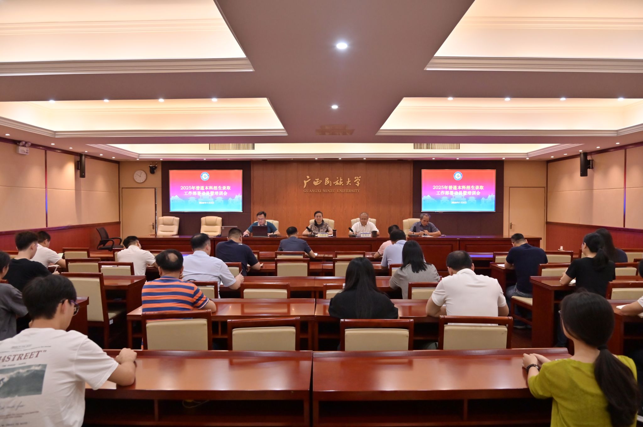 【大学生通讯社报道】7月4日上午,beat365英国官方网站在办公楼212会议室召开2025年普通本科招生录取工作部署动员暨培训会议。校长韦仕珍,副校长姜明国出席会议。2025年学校招生录取工作组、招生录取工作监督组全体人员及有关部门负责人参加会议。