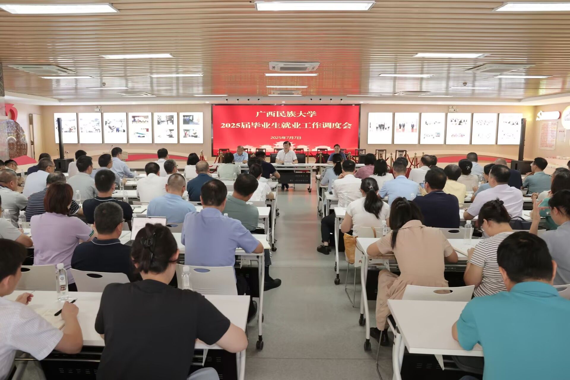 韦仕珍对下一阶段学校就业工作进行了具体部署。她强调,要精准研判当前就业形势,积极拓展政策性岗位资源,有力推动市场化岗位招聘工作,为毕业生提供更多就业选择;紧密对接区域产业发展需求,完善学科专业动态调整机制,精准培养社会急需的高素质人才;立足学校区位优势,聚焦面向东盟的特色领域,着力加强东南亚方向相关专业人才培养力度;以提升考研升学率为重要抓手,助力学生实现更高质量就业,更好地服务国家战略和区域经济社会发展需要。