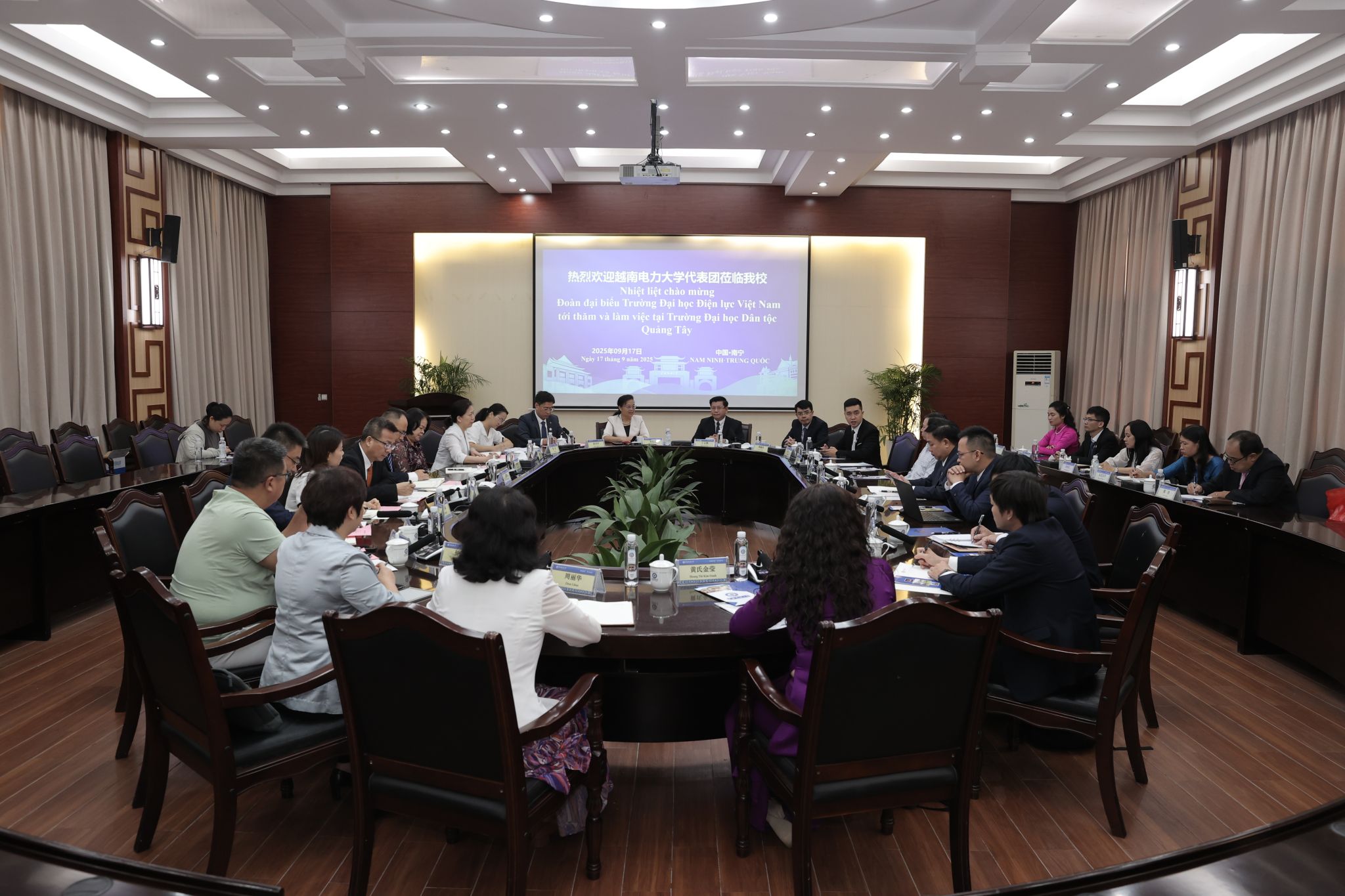 韦仕珍对越南电力大学一行的到访表示欢迎,介绍了学校历史发展、校园建设、国际交流与合作等方面的情况。她表示,学校高度重视与越南有关机构、高校的合作,希望双方充分发挥优势,共享教育资源,联合培养人才,共同谱写合作共赢新篇章。