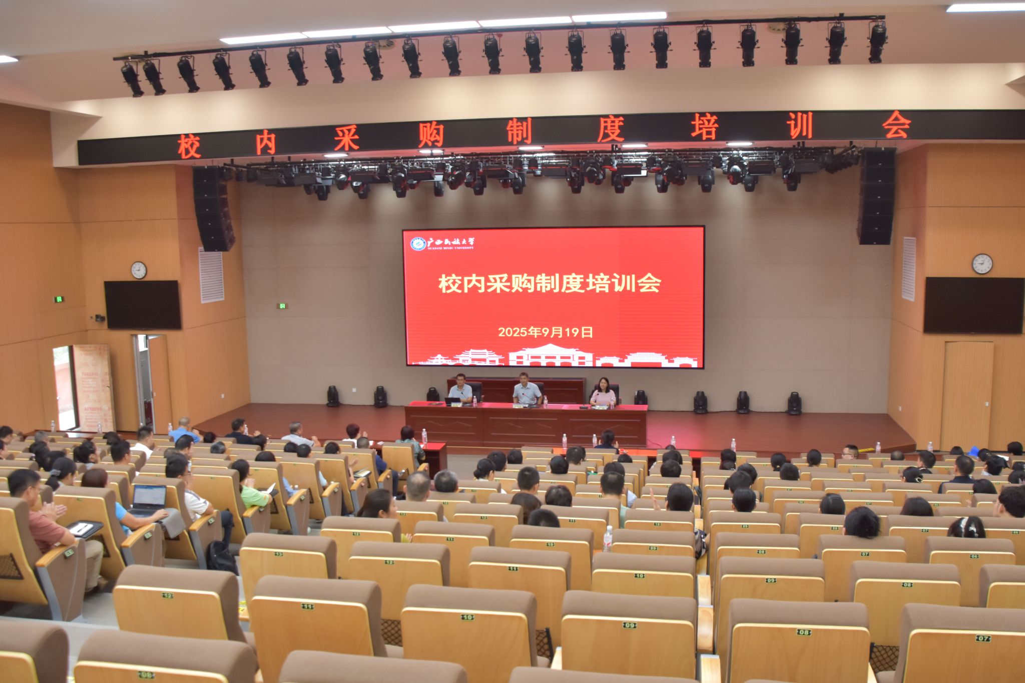 9月19日,校党委常委、副校长吕俊彪在校内采购制度培训会上表示,要提高站位,深刻认识采购工作的重要性,把握权责新定位,准确理解新制度的核心要义,强化风险防范意识,推动采购工作规范化、精细化,确保采购工作廉洁高效。(初审/黄善斌 图文/覃慧岚 编/黎倩雅 复审/李建瑾 终审/孙寿媚)