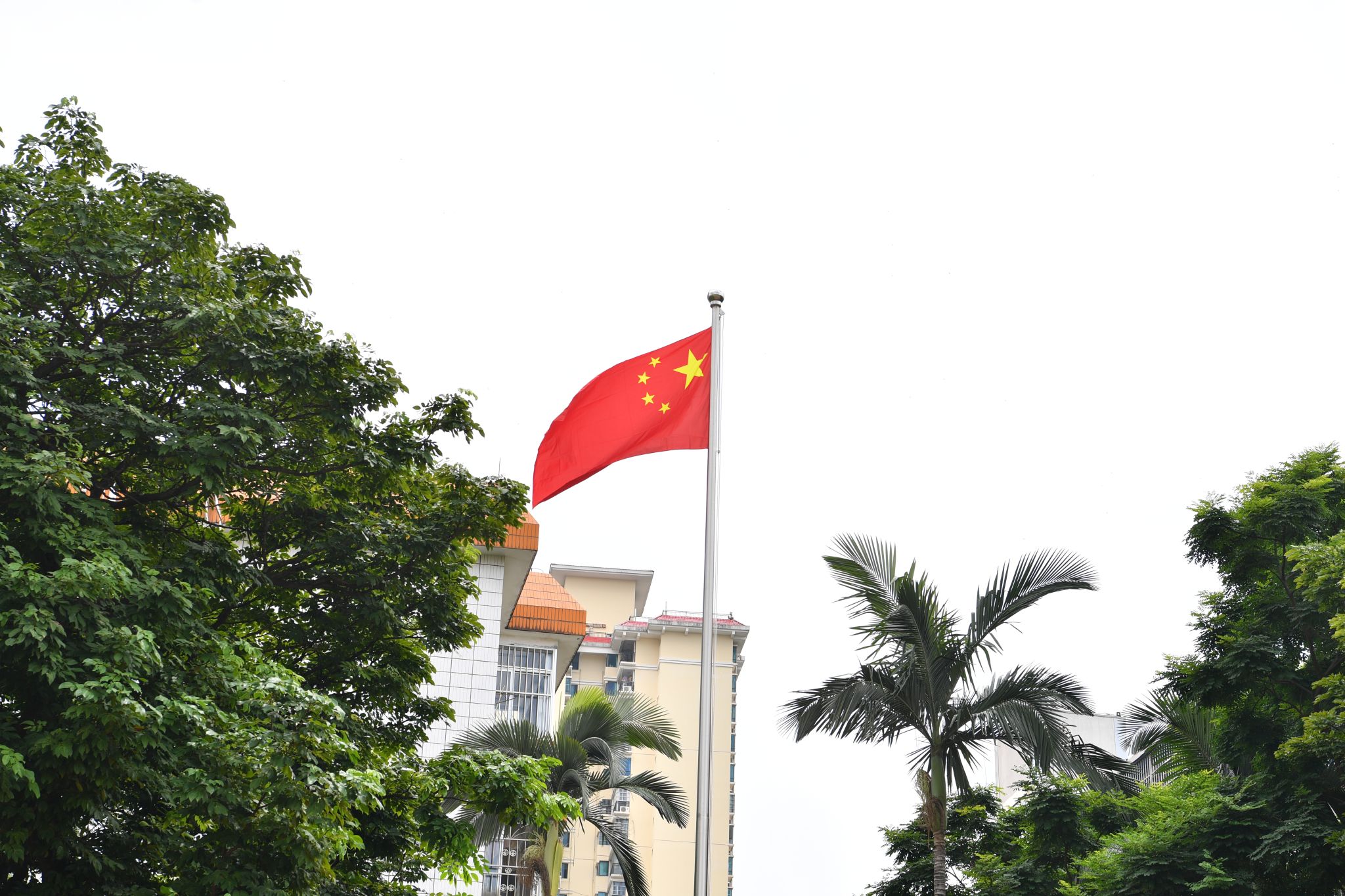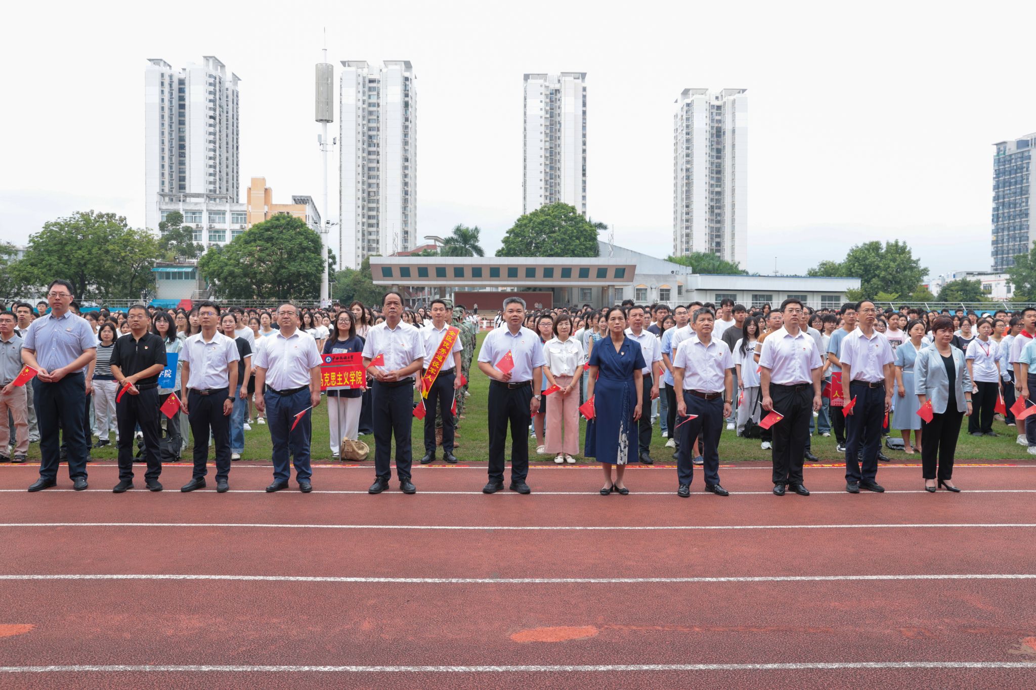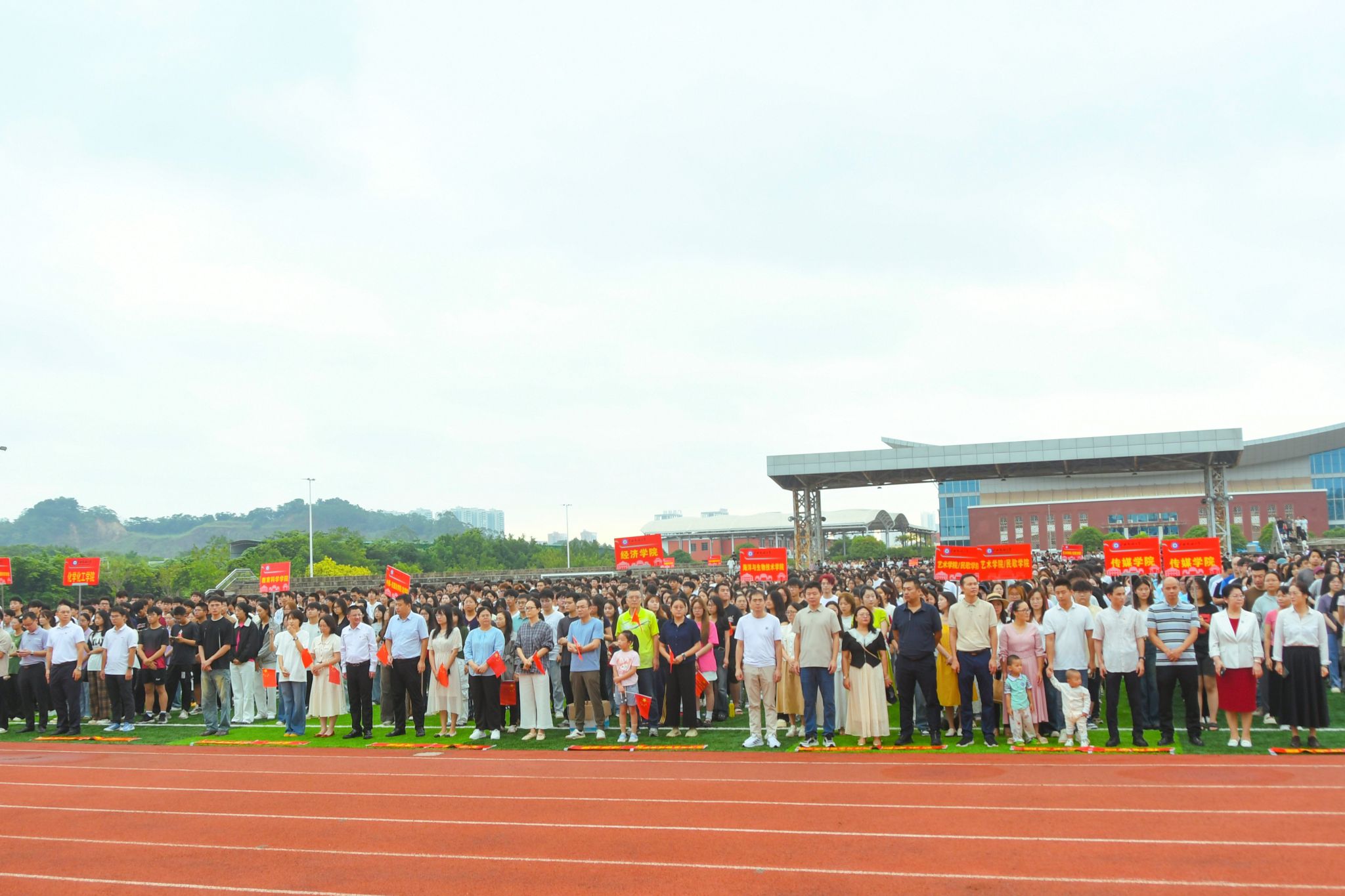 “五星红旗迎风飘扬,胜利歌声多么嘹亮……”当《歌唱祖国》的激扬旋律响起,现场师生挥动手中红旗,深情合唱,共同祝愿伟大祖国繁荣昌盛,国泰民安。(初审:罗少科 复审:李建瑾 终审:孙寿媚)
