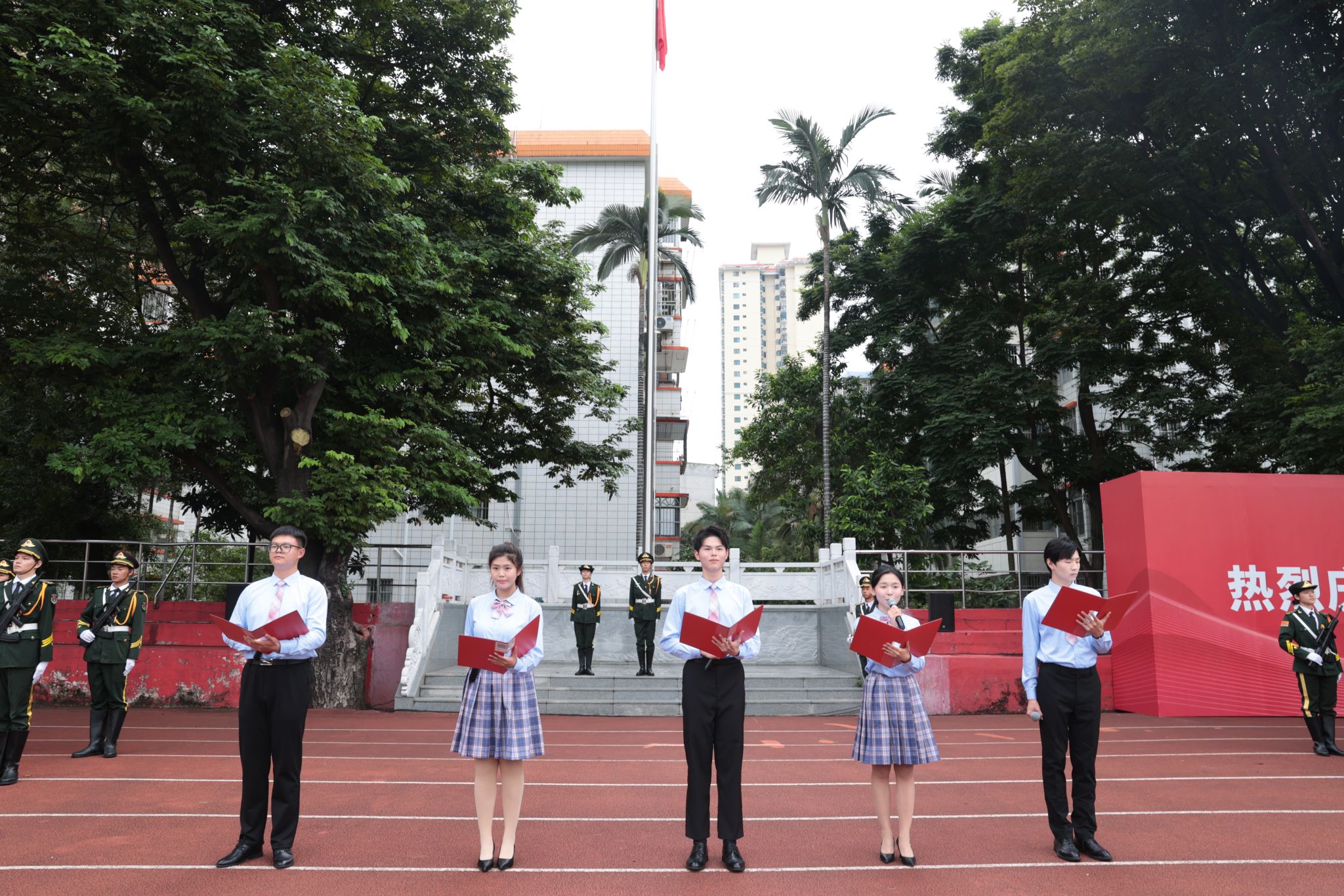 学生代表在国旗下宣誓,他们精神饱满,语气铿锵,掷地有声的誓言饱含着对祖国诚挚的祝愿与感激,展现出新时代青年挺膺担当的精神风貌。