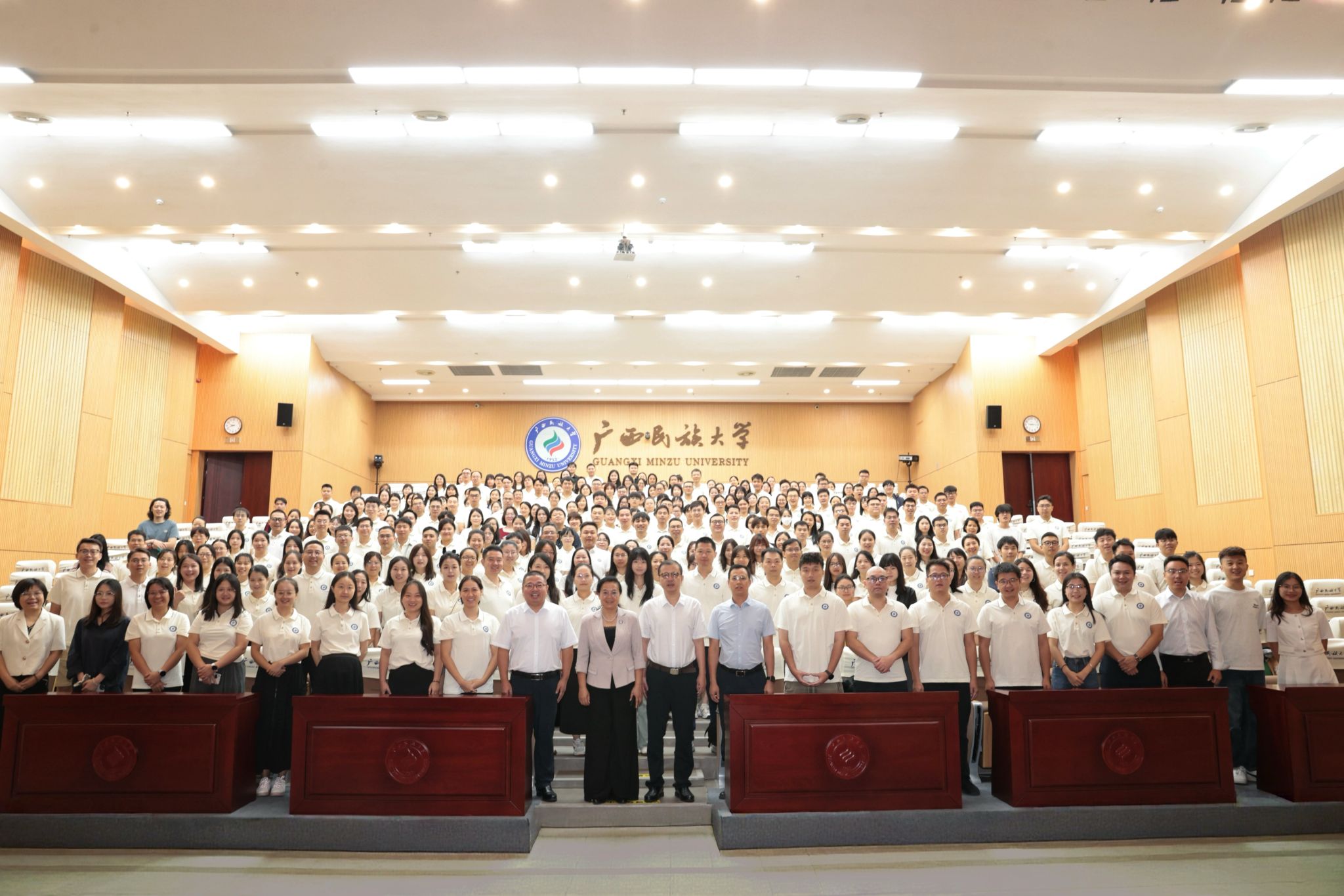 韦仕珍对新生们提出四点希望:一是胸怀大局,将个人发展融入国家战略与区域合作中,把握中国-东盟合作机遇,实现商业价值与社会价值的统一;二是厚植根基,善用学校的东盟视野与民族区域资源,成长为适应区域发展的高层次人才;三是秉持“厚德博学、和而不同”的校训,在多元交流中激发创新思维;四是勇于躬行实践,积极投身民族地区与东盟方向的实践平台,探索跨境商业新模式,成为连接区域与全球的桥梁。